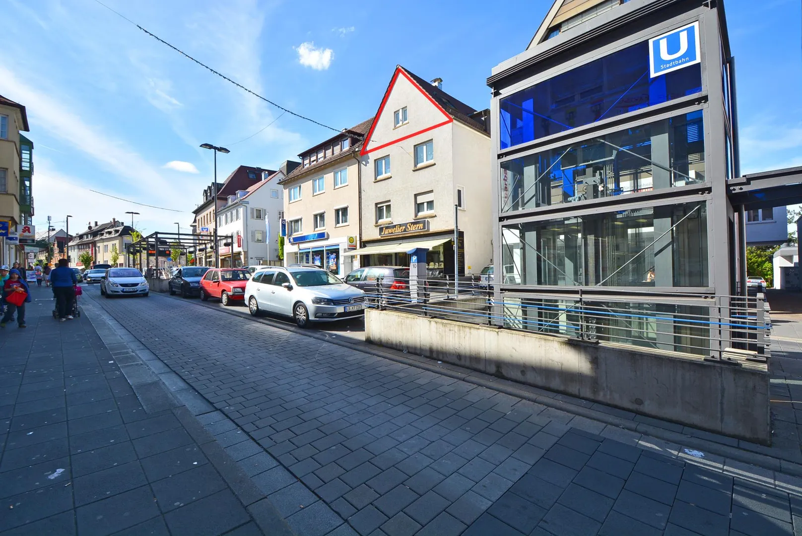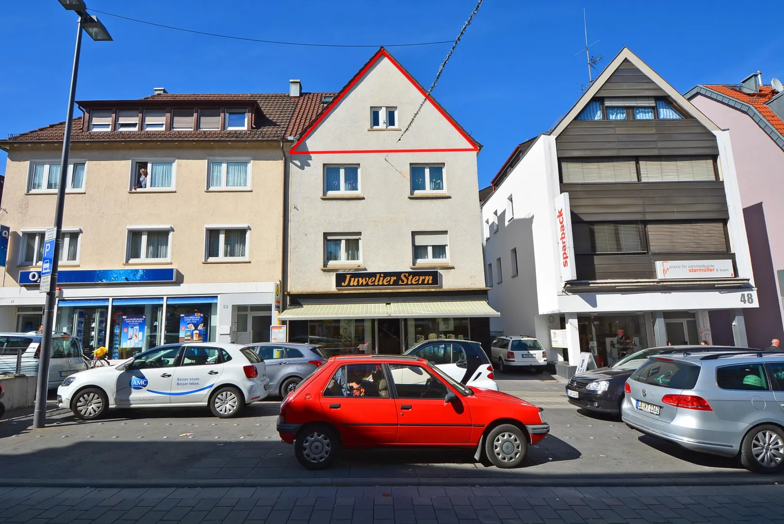 In dem freistehenden Haus befinden sich 3 Wohneinheiten sowie ein Juweliergeschäft im Erdgeschoss.