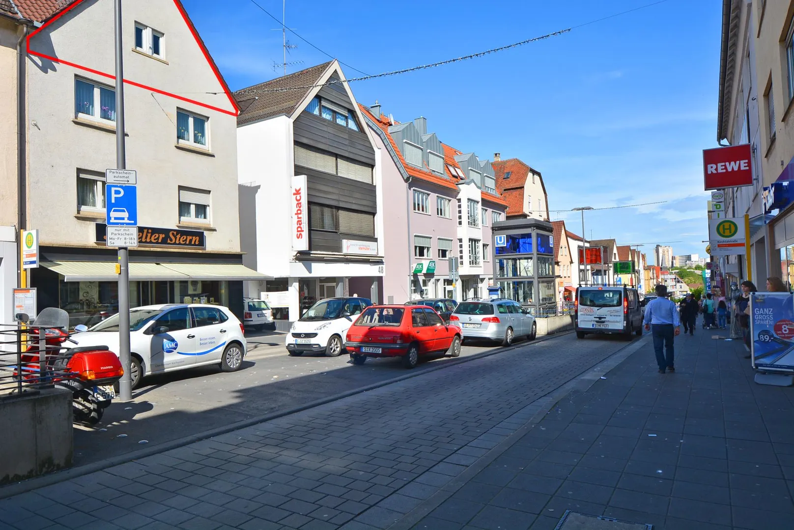 Diese bequeme und möblierte 2-Zimmer-Dachgeschoss-Etagen-Wohnung befindet sich im 3. Obergeschoss eines Wohn- und Geschäftshauses in der Haupteinkaufsstraße von Stuttgart-Zuffenhausen.