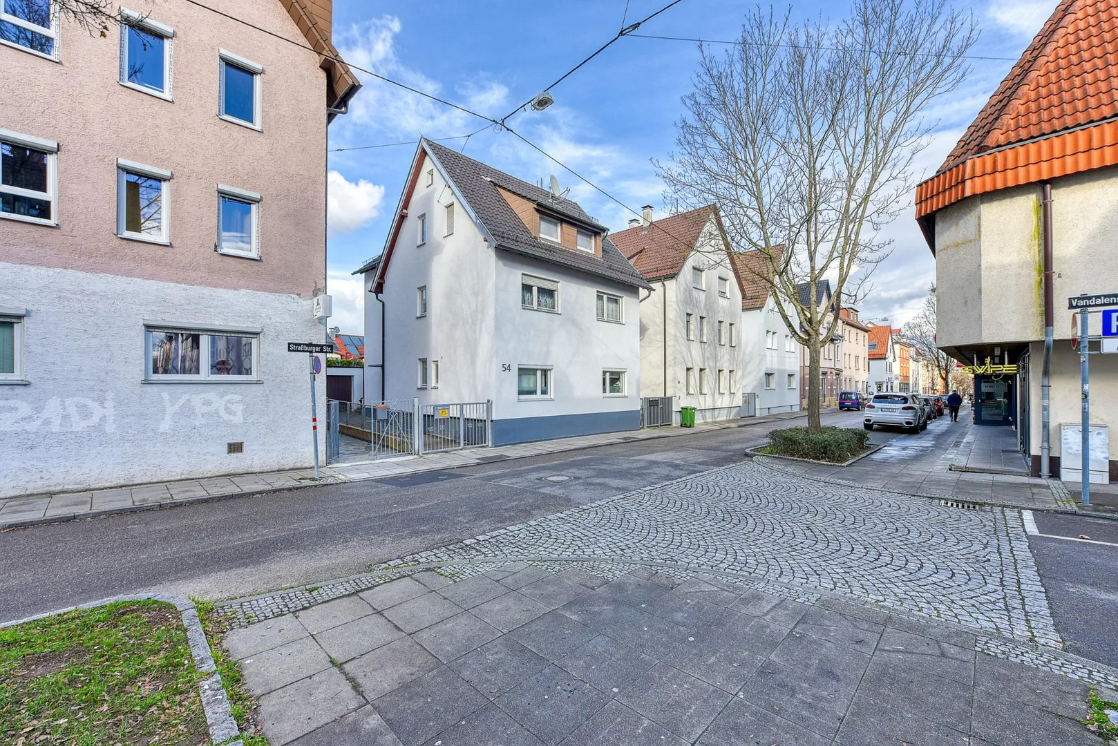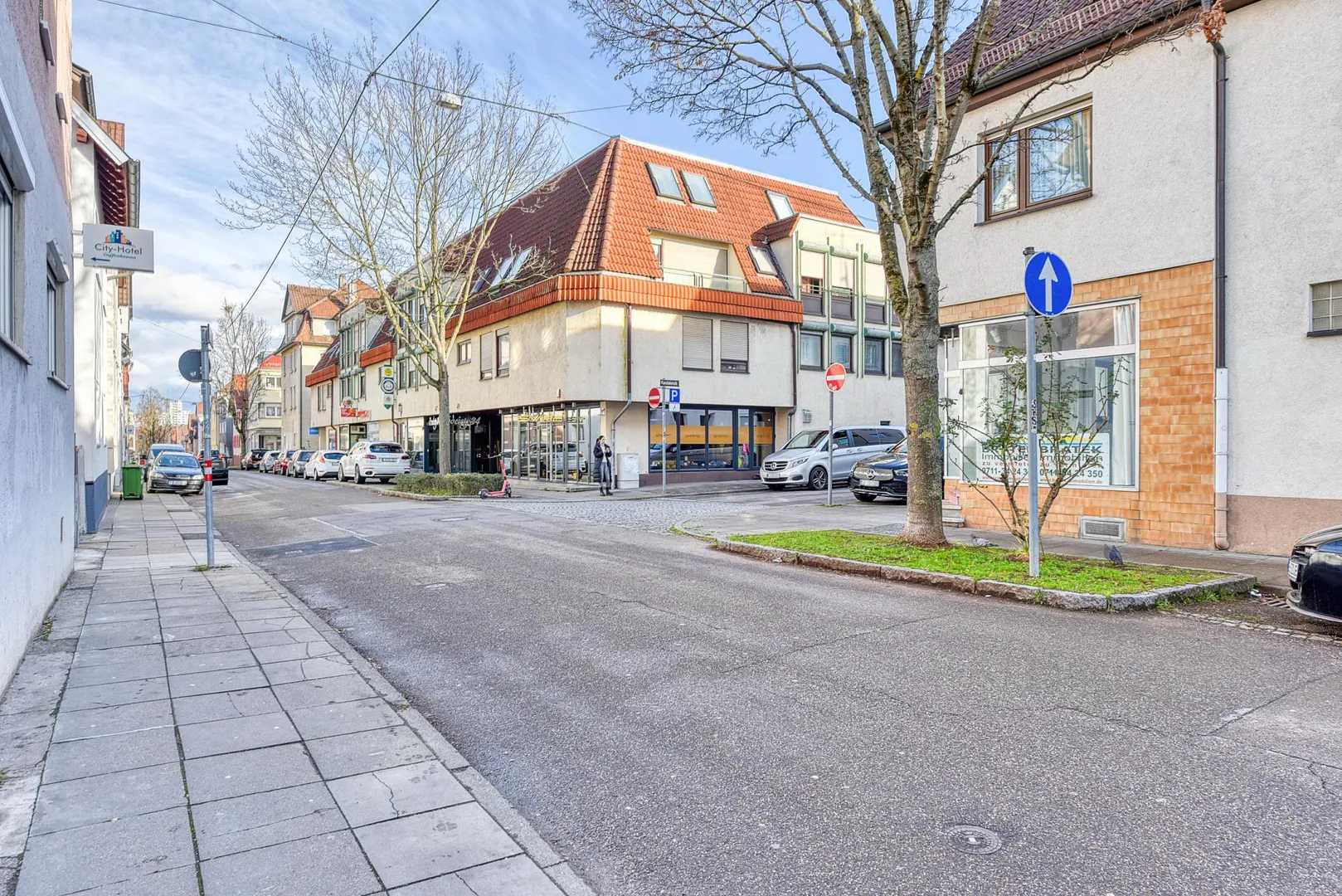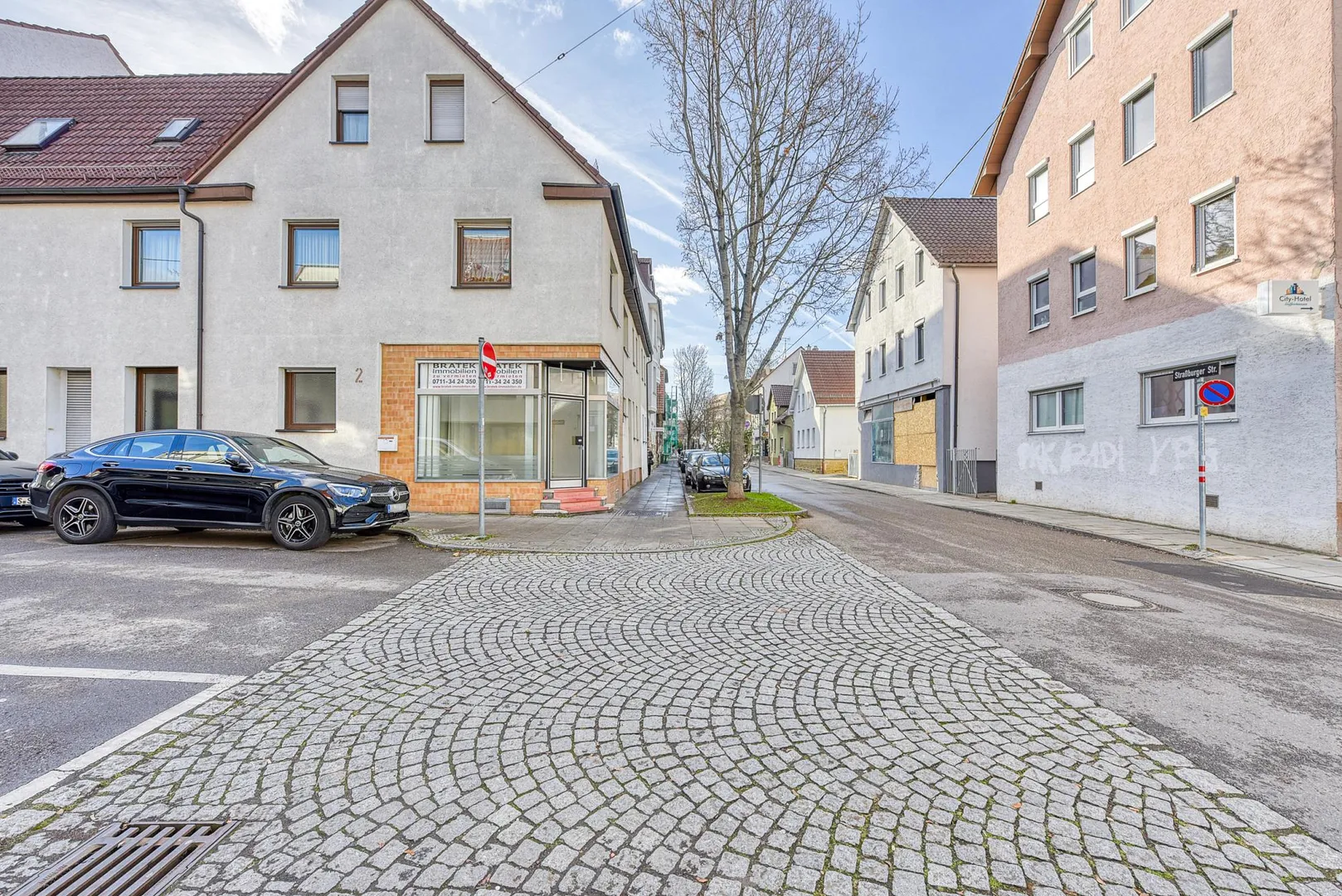Die Gewerbeeinheit befindet sich in B-Eck-Lage, Ecke Straßburger Straße/Vandalenstraße.