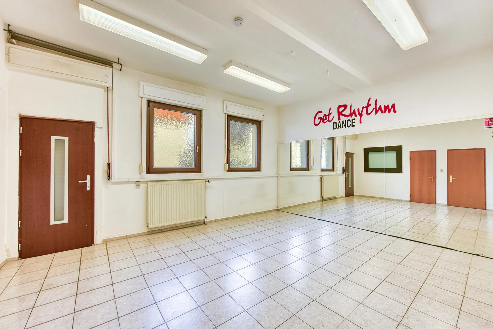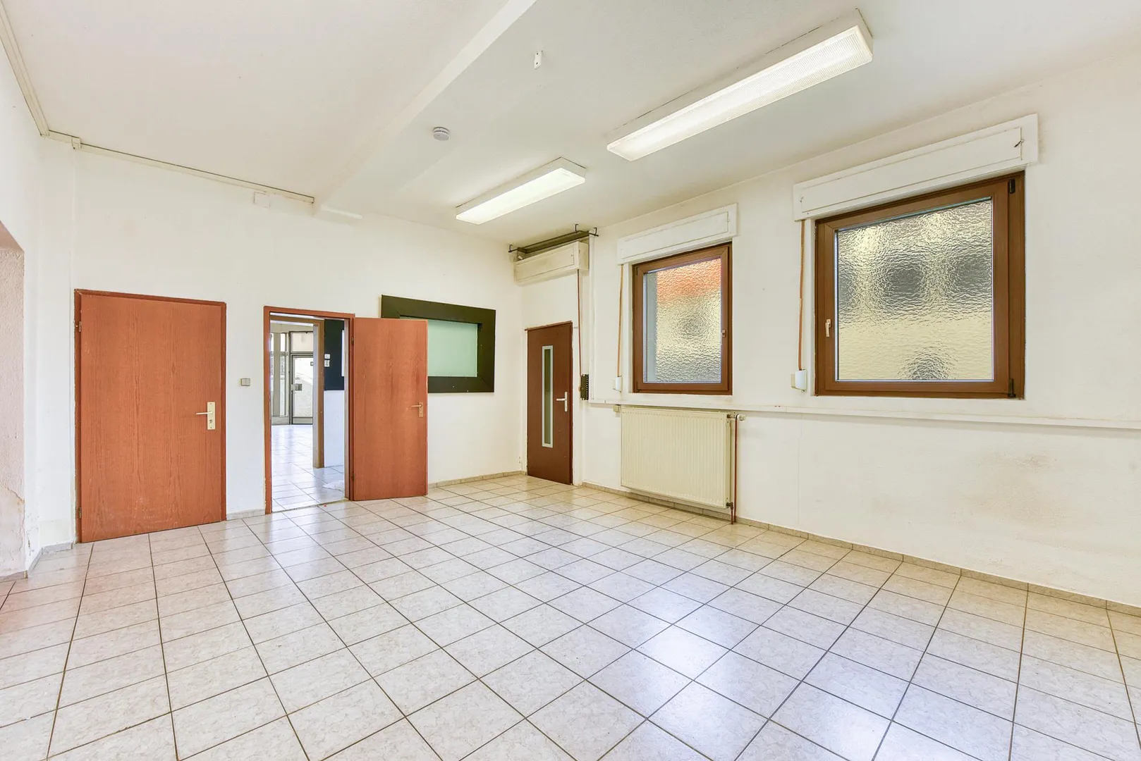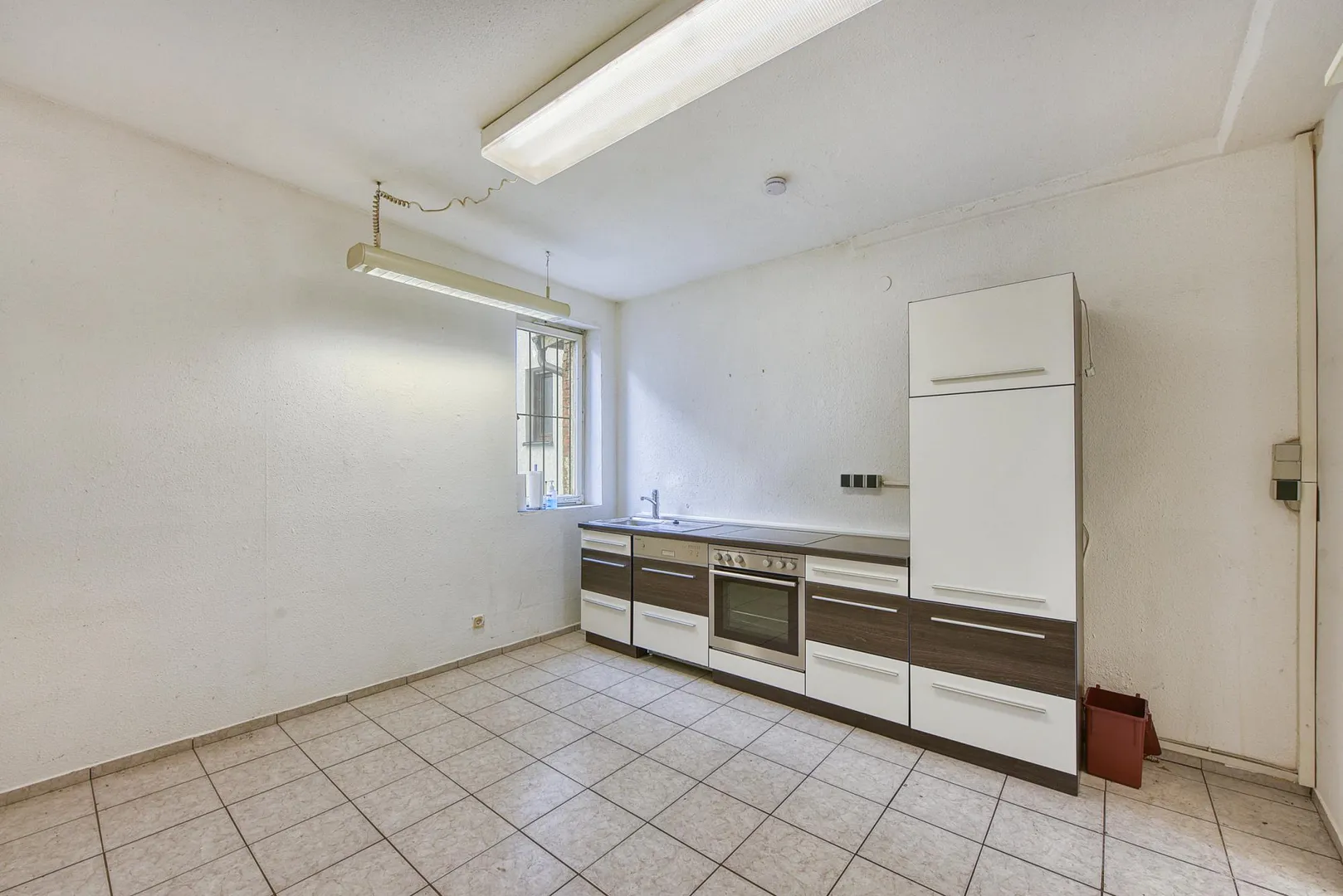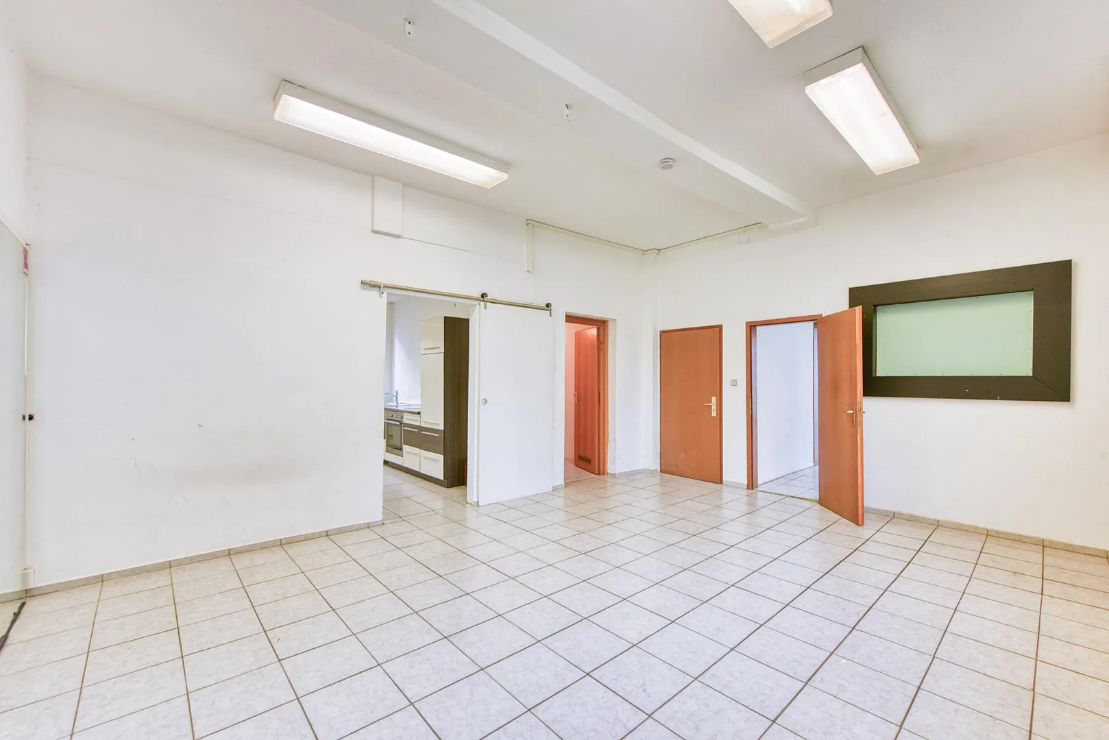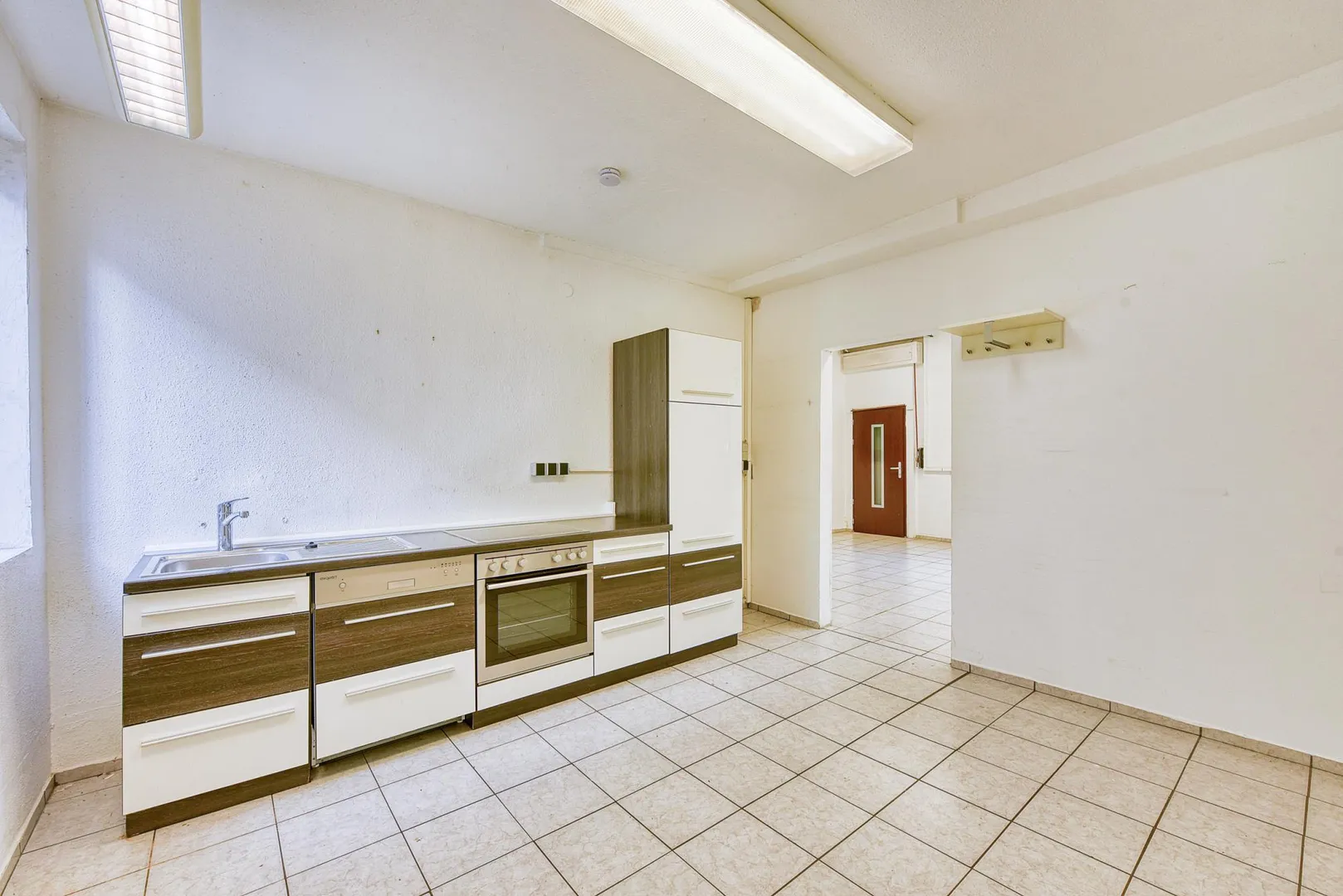 Insgesamt gibt es 2 1/2 Geschäftsräume, eine Küche und ein Bad mit WC und Dusche.