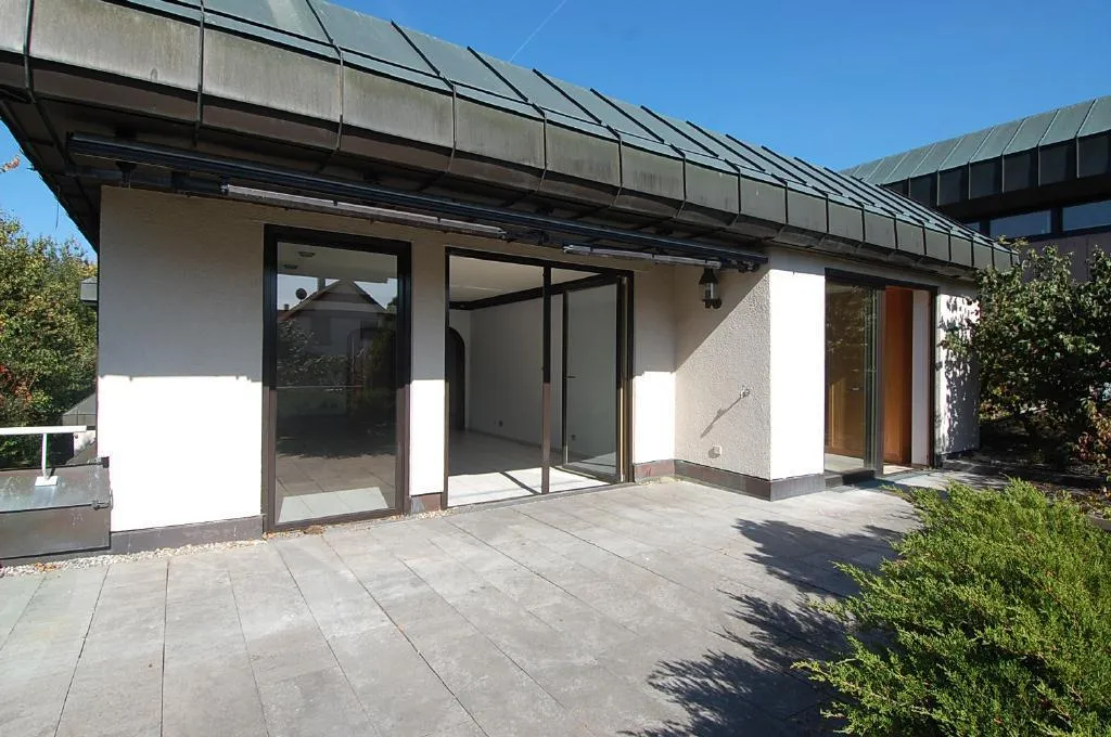 Diese offene, helle und sonnige 3 1/2 Zimmer-Penthouse-Wohnung mit 40 m² Dach-Terrasse befindet sich im 1. Obergeschoss eines 2-Familien-Hauses mit separaten Zugang.