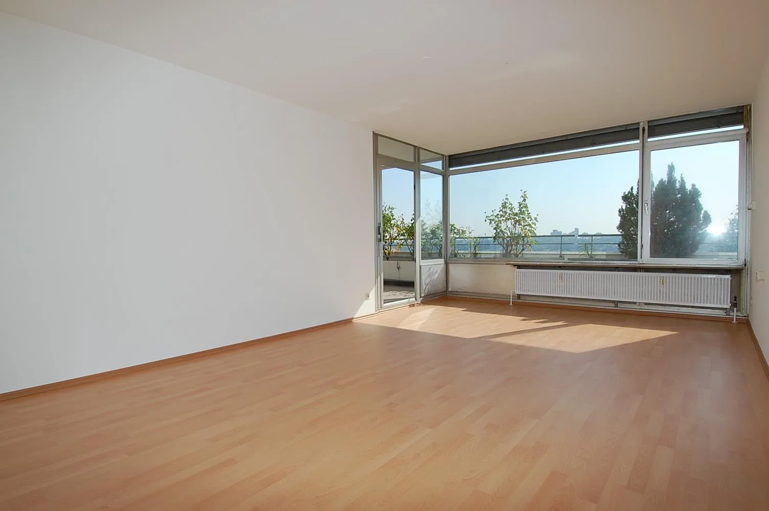 Der Ost-Süd Balkon ist zum Großteil überdacht. Über die ganze Balkonbreite gibt es ein großzügiges Blumen- und Pflanzenbeet.