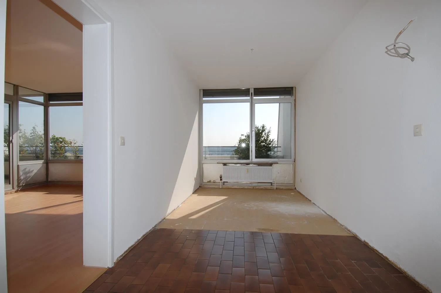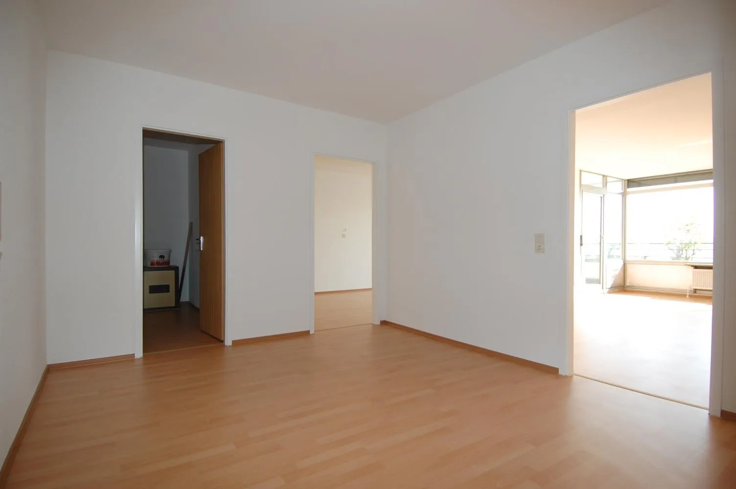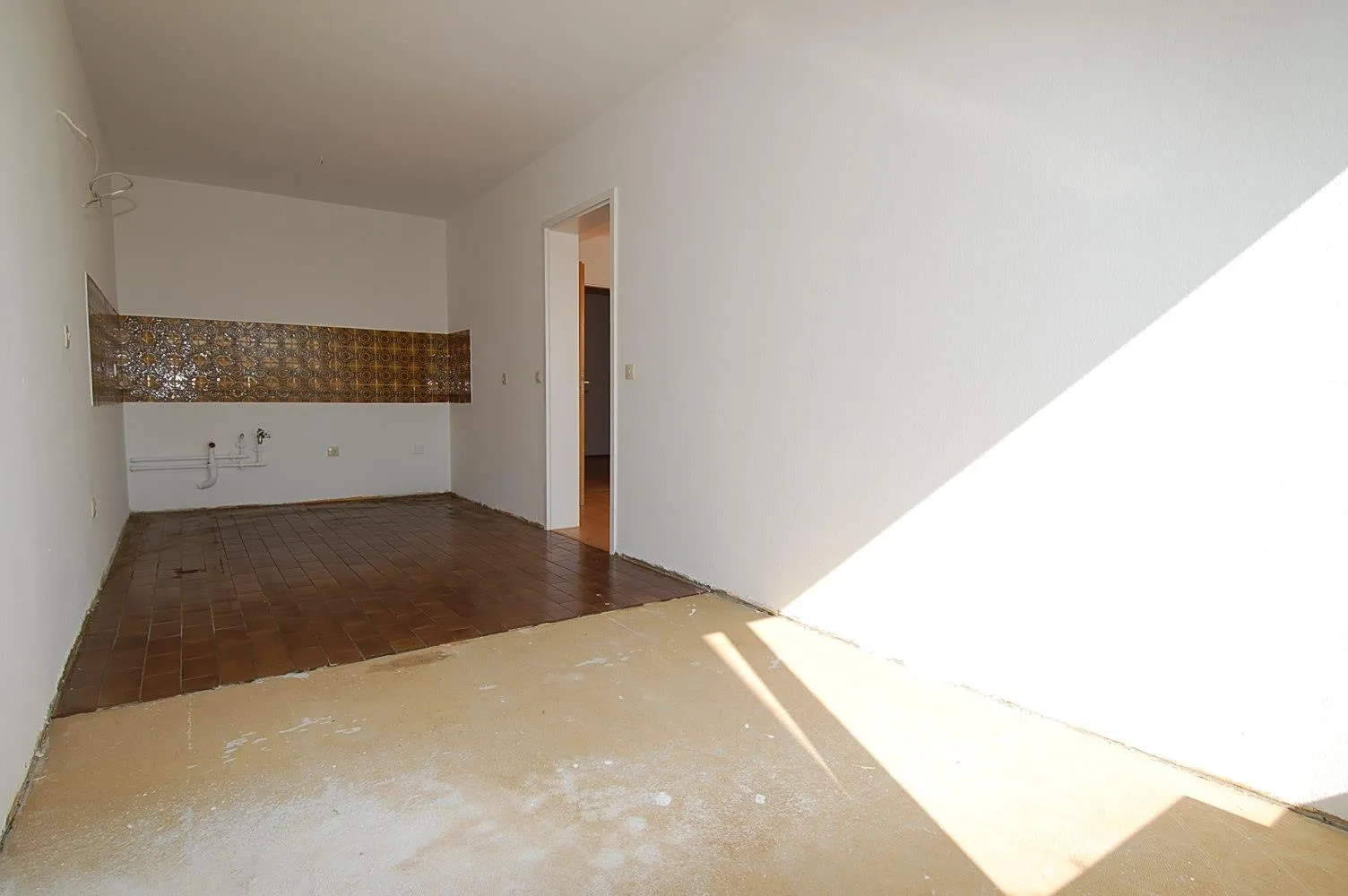 Die Wohnung wurde aktuell frisch renoviert. Sie wurde neu gestrichen und ein Laminatboden wurde verlegt. Das Badezimmer und die Küchenfliesen sind noch alt.