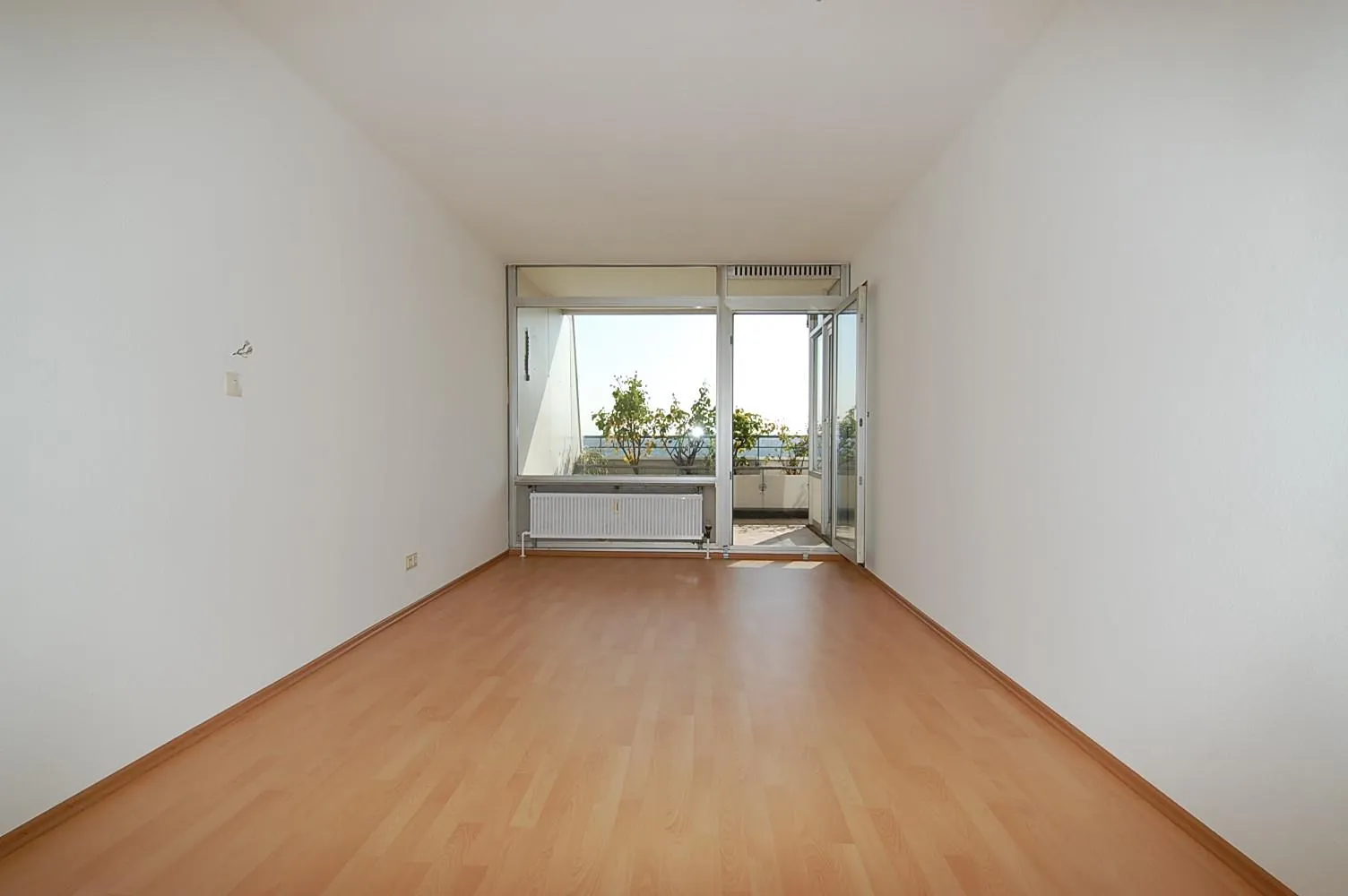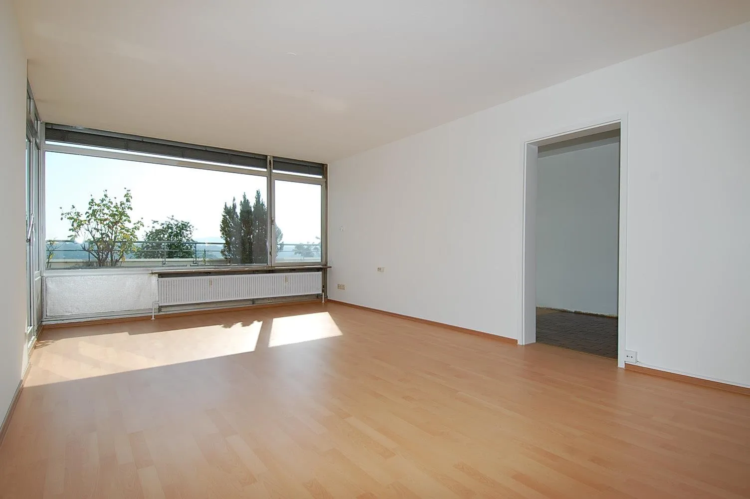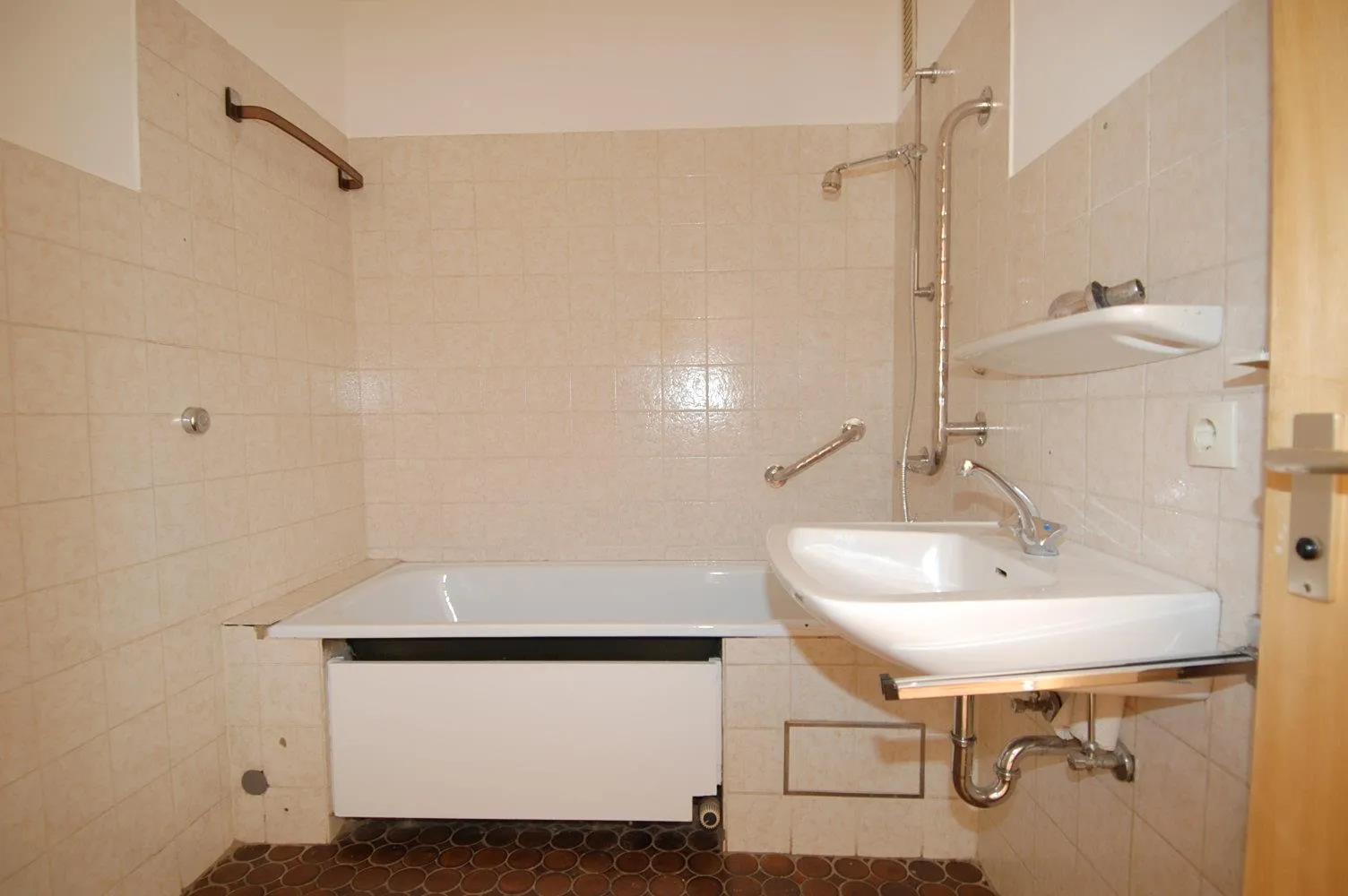 Die Wohnung wurde aktuell frisch renoviert. Sie wurde neu gestrichen und ein Laminatboden wurde verlegt. Das Badezimmer und die Küchenfliesen sind noch alt.