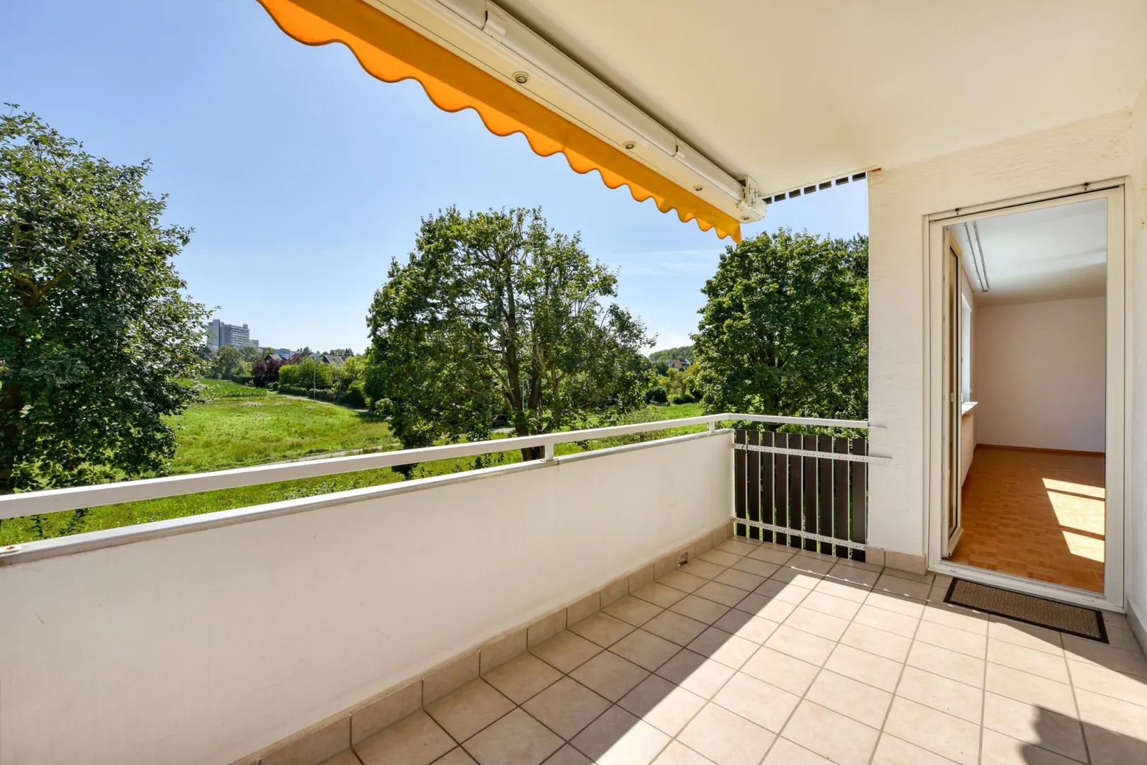 Der Balkon ist mit einer elektrischen Markise ausgestattet.