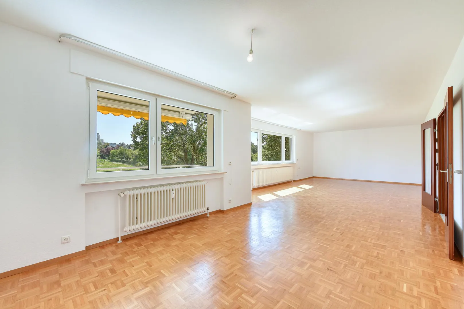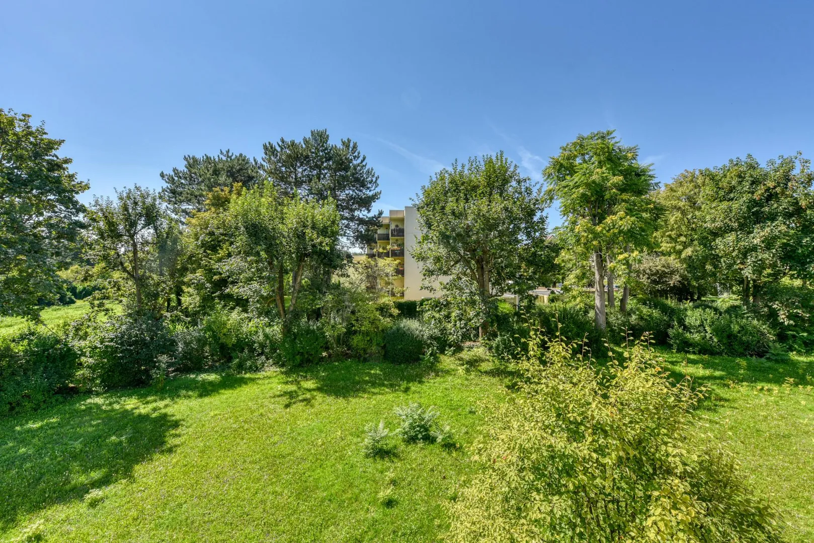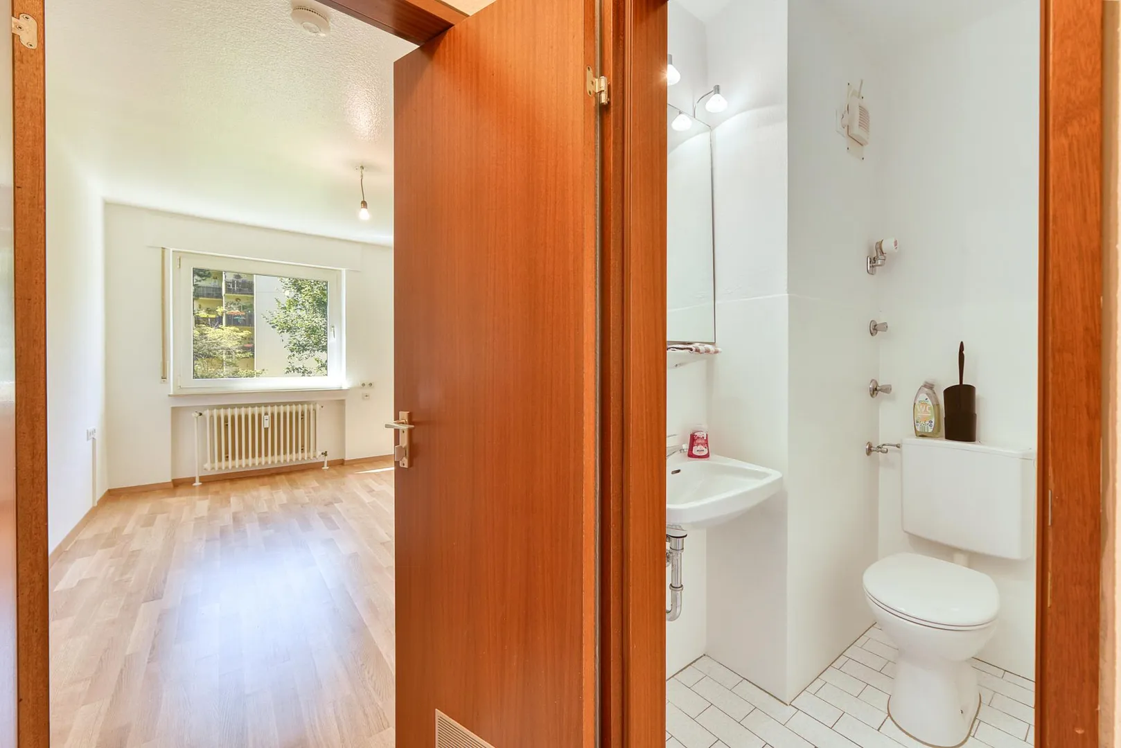 Die Wohnung befindet sich in einer sehr grünen Lage. Aus jedem Zimmer gibt es einen Blick ins Grüne.
