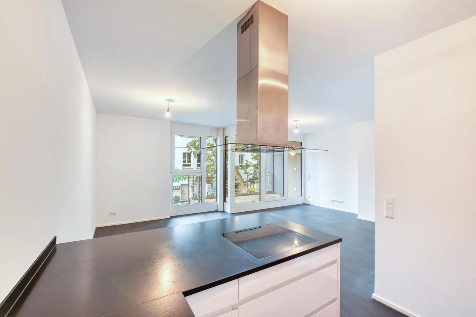 Die offene Küche ist ausgestattet mit einer LEICHT-Einbauküche mit Neff- und Miele-Geräten.