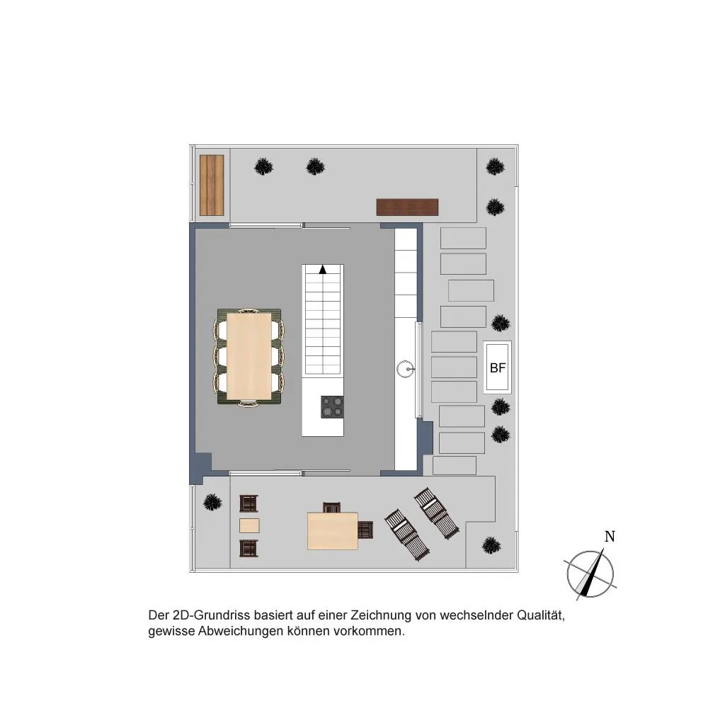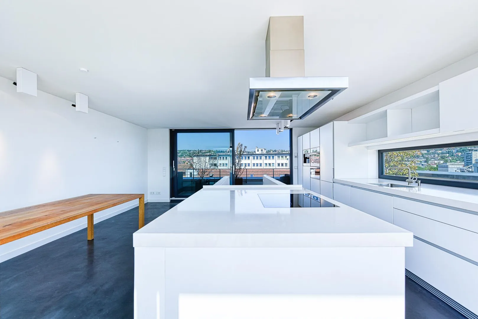 Im Dachgeschoss 2 befinden sich die offene Küche mit hochwertiger Einbauküche sowie der offene Essbereich.