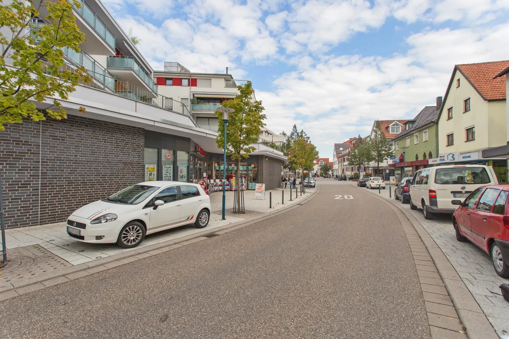 Die Wohnung befindet sich im Zentrum und an der Haupteinkaufsstraße im Ditzingen. Die Haupteinkaufsstraße ist eine 20-er Zone.