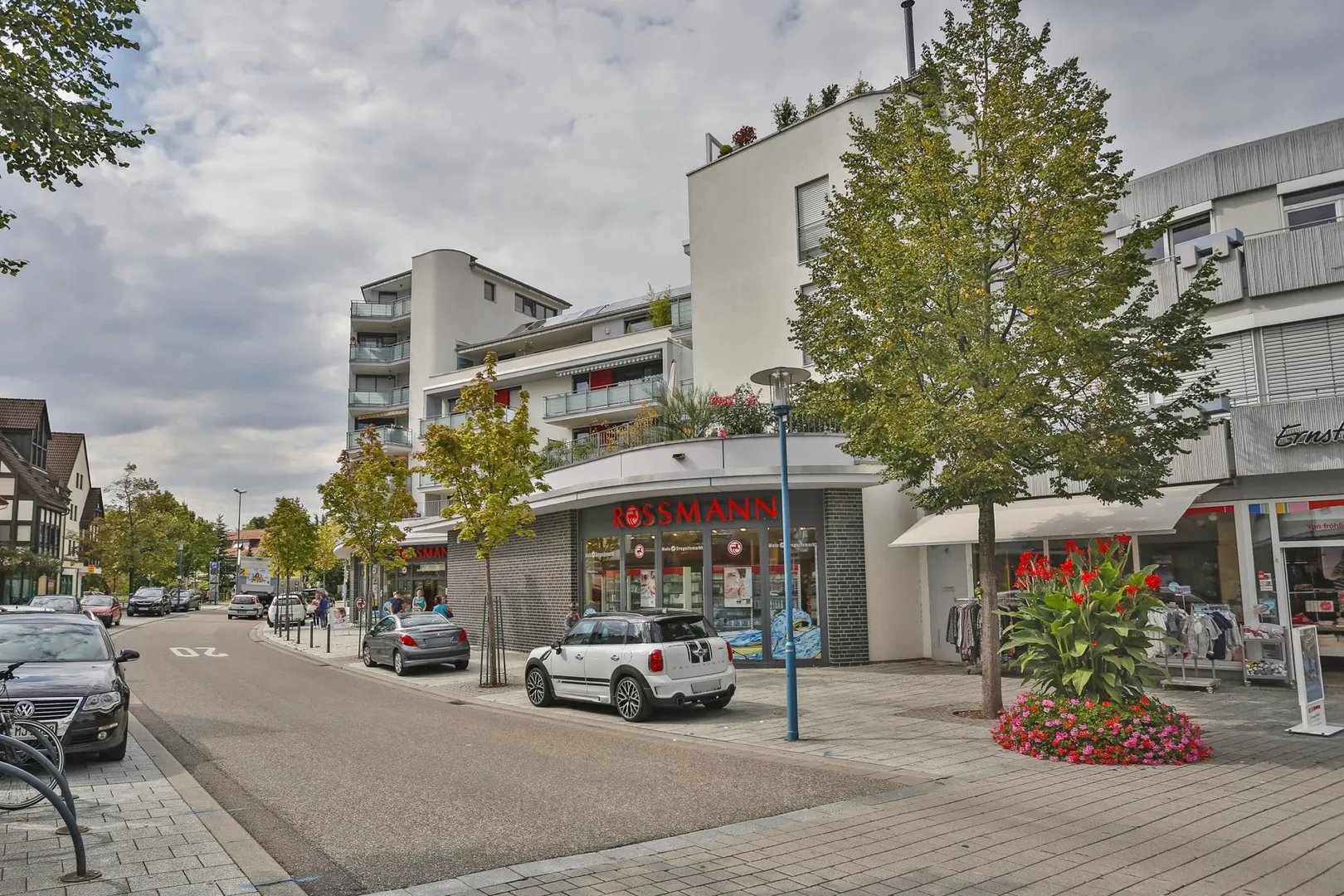 Im Erdgeschoss befindet sich die Drogerie Rossmann. Im Haus befinden sich 13 Wohneinheiten.