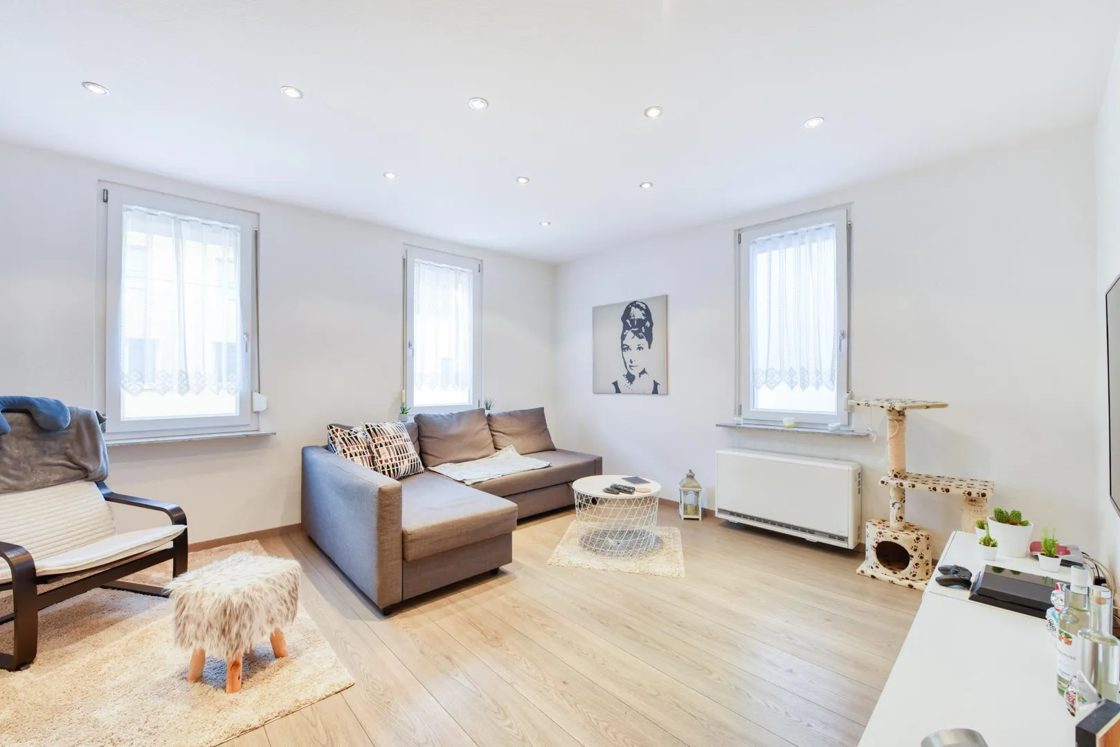 Diese gemütliche, gehobene und moderne 3-Zimmer-Wohnung mit Holz-Kamin befindet sich im 1. Obergeschoss.