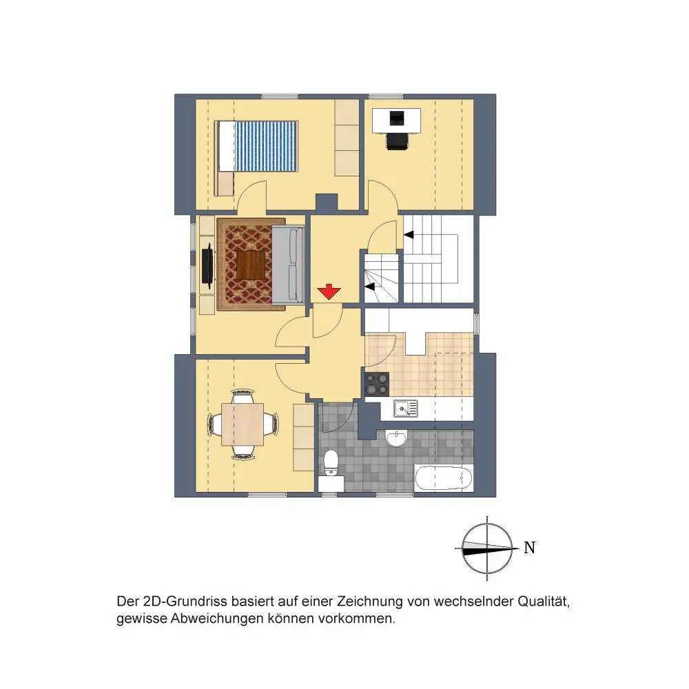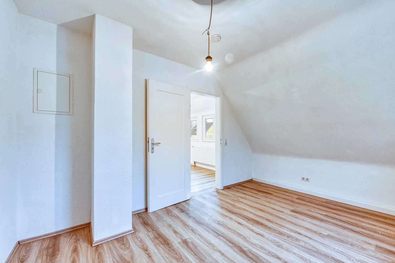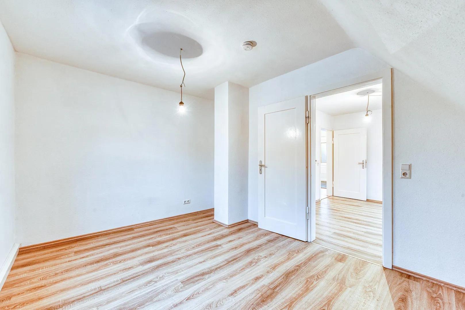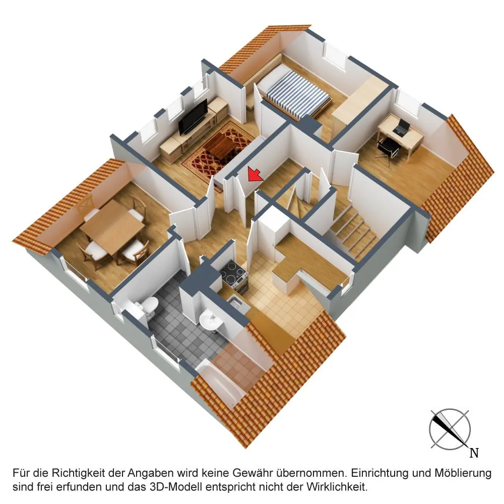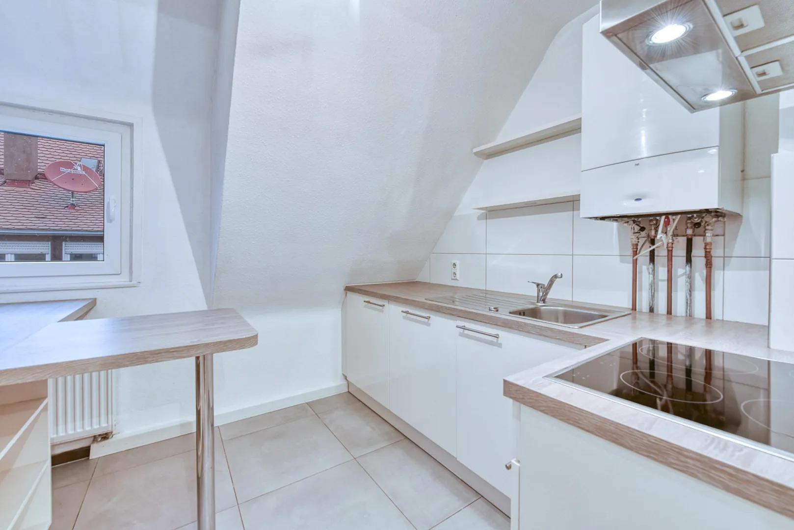 Diese modernisierte und gemütliche 3-Zimmer-Dachgeschoss-Etagen-Wohnung mit einem Arbeitszimmer neben der Wohnung befindet sich im 2. Obergeschoss.