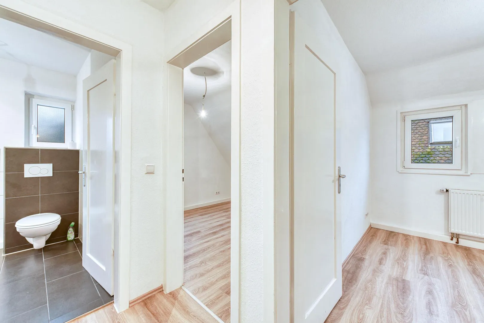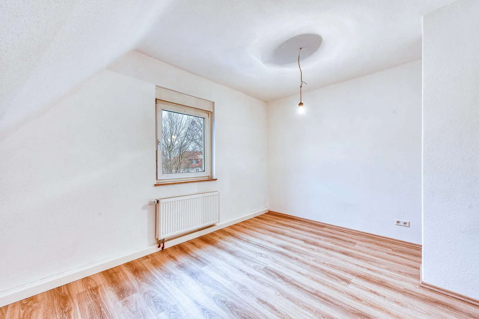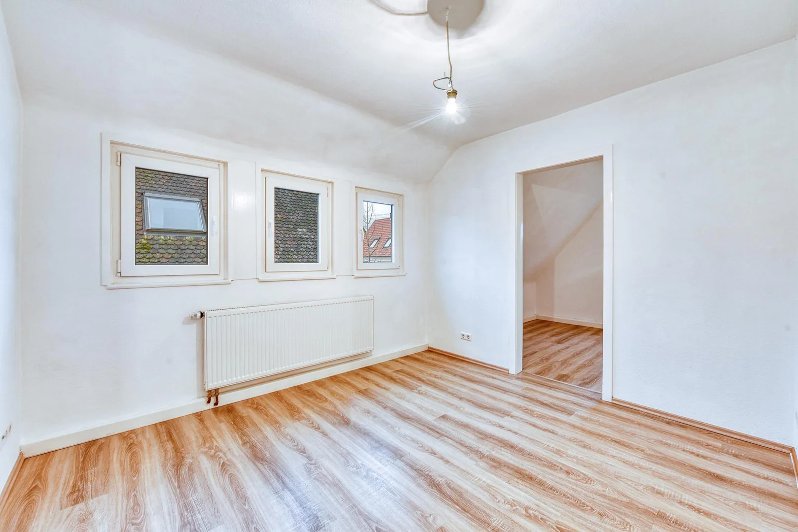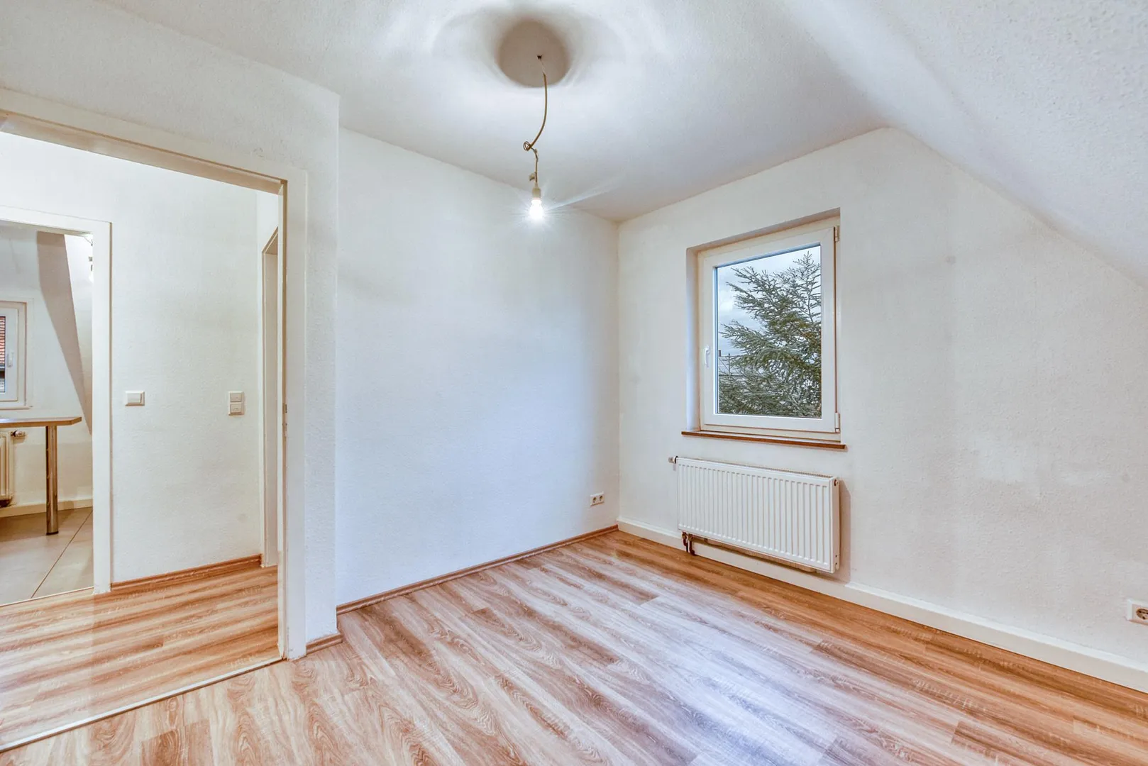 Diese modernisierte und gemütliche 3-Zimmer-Dachgeschoss-Etagen-Wohnung mit einem Arbeitszimmer neben der Wohnung befindet sich im 2. Obergeschoss eines 3-Familienhauses.