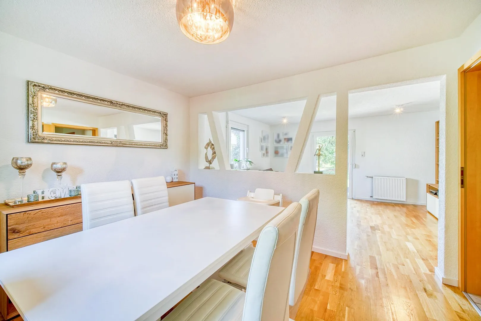 Dieses modernisierte und gemütliche 4-Zimmer-Haus verfügt über ca. 84,5 m² Wohnfläche, einen Hobbyraum auf der Bühne mit ca. 11,5 m² Nutzfläche sowie einen Mehrzweckraum inklusive WC im Hobbyhäusle mit ca. 12,9 m² Nutzfläche.