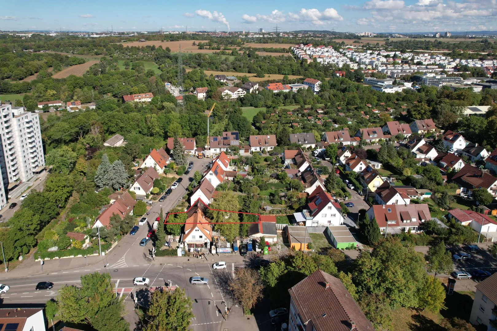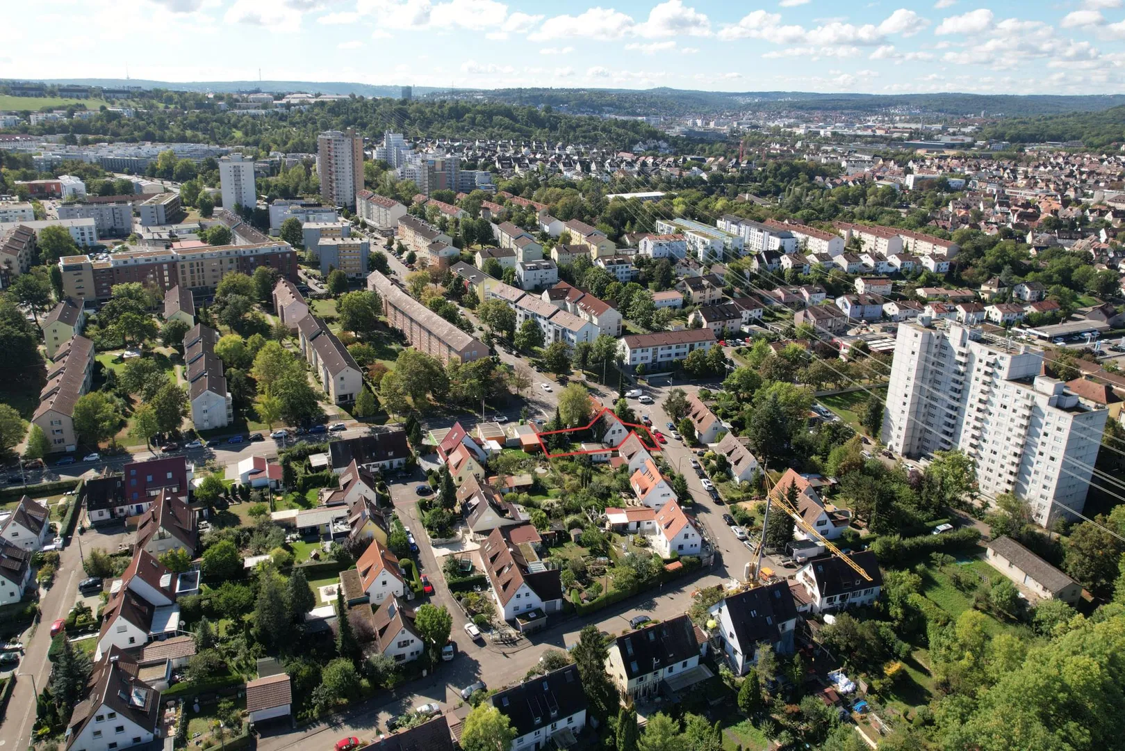 Das Haus befindet sich in grüner und zentrumsnaher Wohnlage in Stuttgart-Zuffhausen/Rot im Wohngebiet "Alte Rotwegsiedlung".