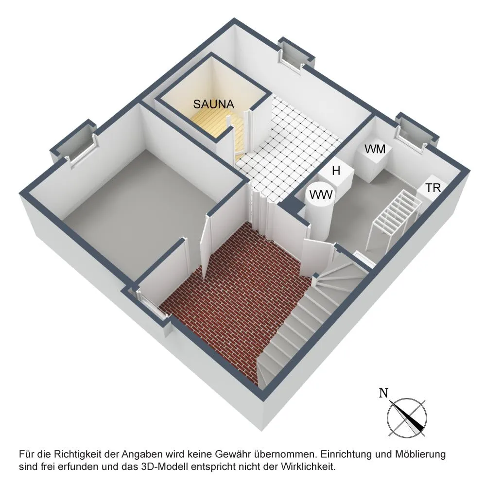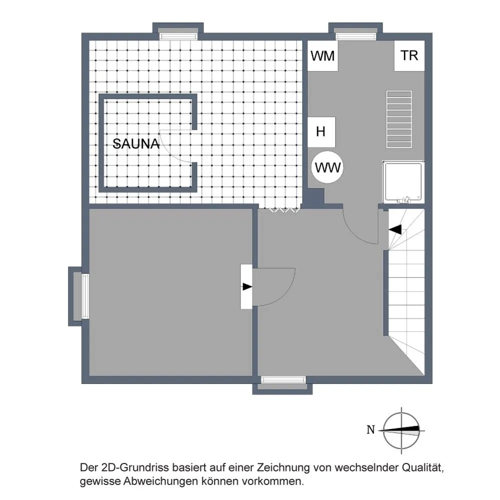Im Keller befinden sich 3 Räume inklusive einer Sauna mit ca. 42,1 m² Nutzfläche.