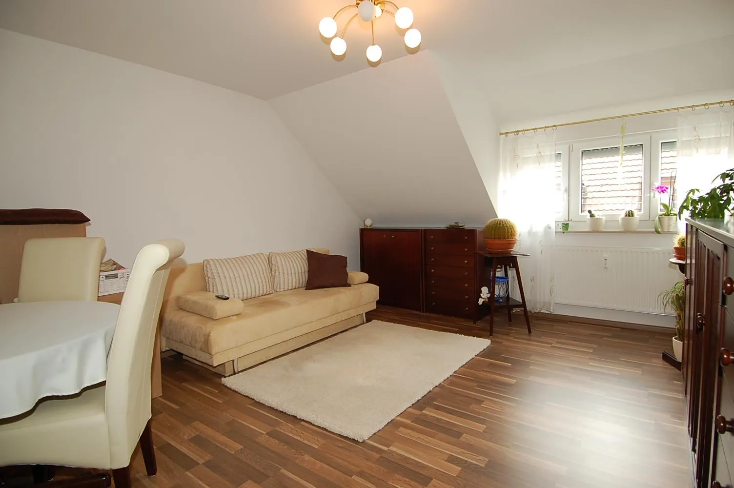 In das Wohnzimmer gelangen Sie vom Essbereich der Küche aus.