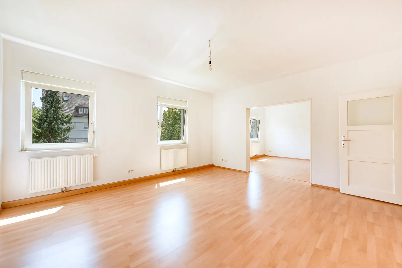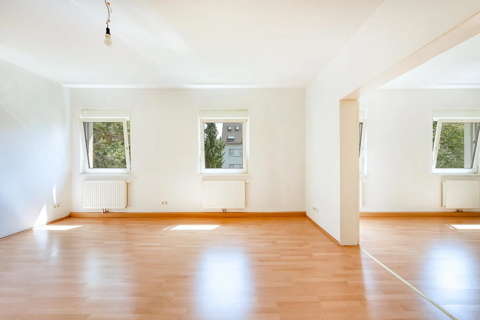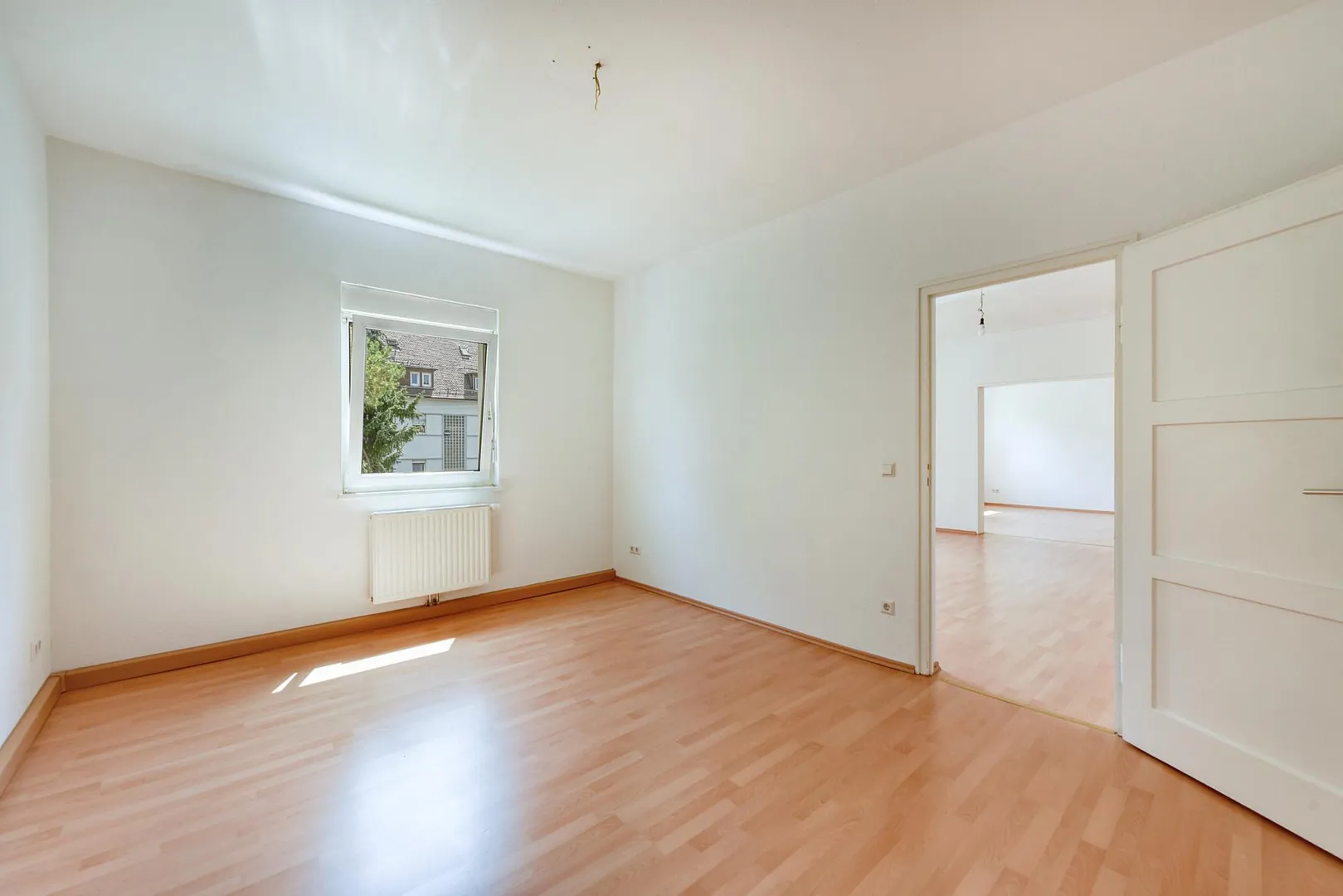 Diese modernisierte und frisch renovierte 5-Zimmer-Wohnung ohne Balkon, befindet sich im 1. Obergeschoss.