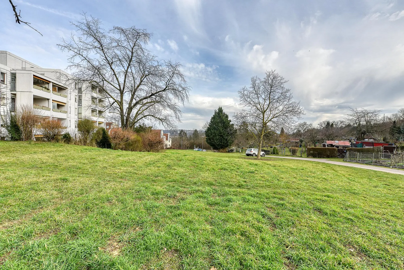 Hinter den Schrebergärten verlaufen die Zugschienen sodass es von hier zu dementsprechenden Lärmbelästigung kommt.