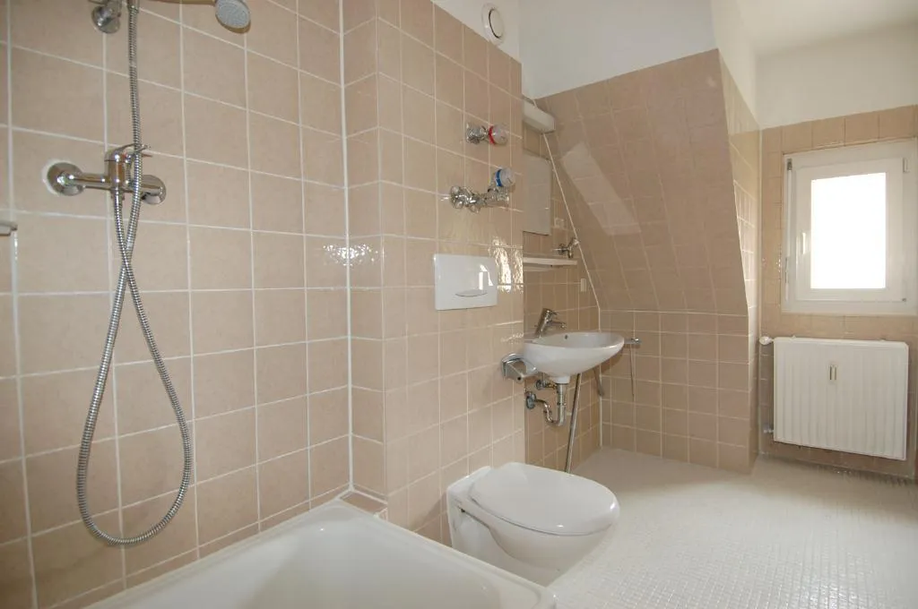 Diese modernisierte 3-Zimmer-Wohnung befindet sich im Dachgeschoss (3.Obergeschoss mit Schrägen) eines kernsanierten 8-Familien-Reiheneckhauses.