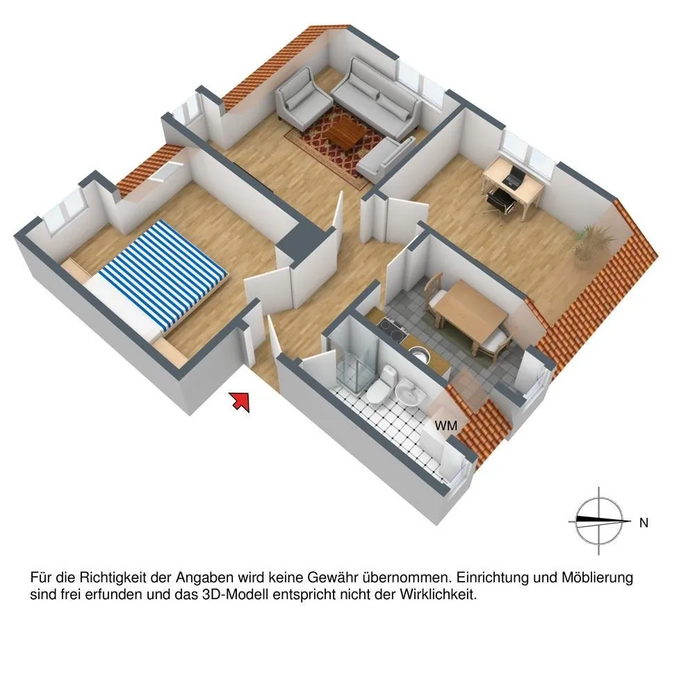 Bitte beachten Sie, dass die Wohnung auf den Bildern größer wirkt als sie eigentlich ist. Die Bilder sollen Ihnen zur Orientierung dienen. Grundrisse und Flächenberechnung liegen dem Exposé anbei.