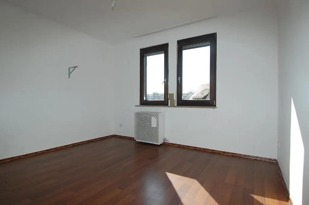 Das Wohn- und das Schlafzimmer haben eine Süd-Ost-Ausrichtung und sind mit einem Laminatboden, einem Gas-Aussenwandofen und verputzten und gestrichenen Wänden ausgestattet.