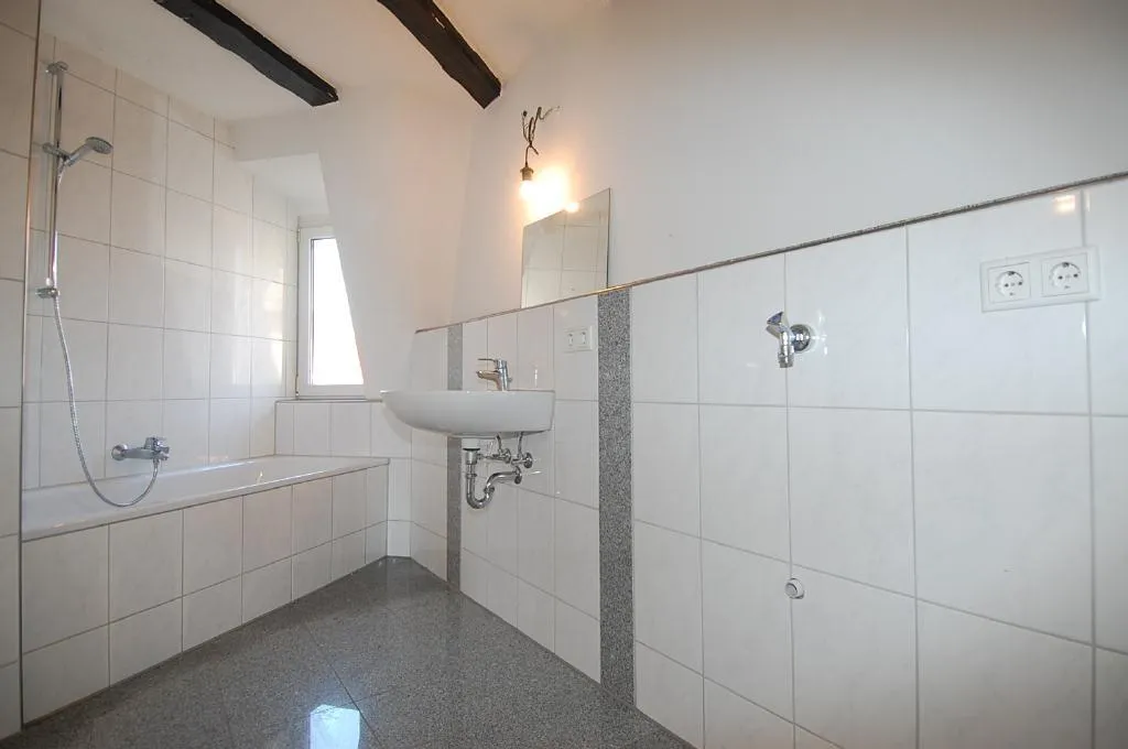 Diese modernisierte und sonnige 2-Zimmer-Dachgeschoss-Wohnung befindet sich im 2.Obergeschoss einer 3-Familien-Doppelhaushälfte.