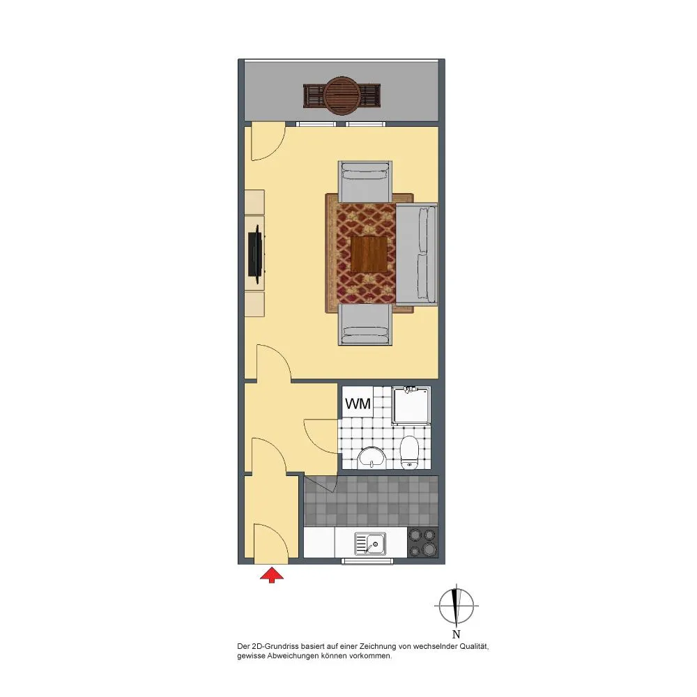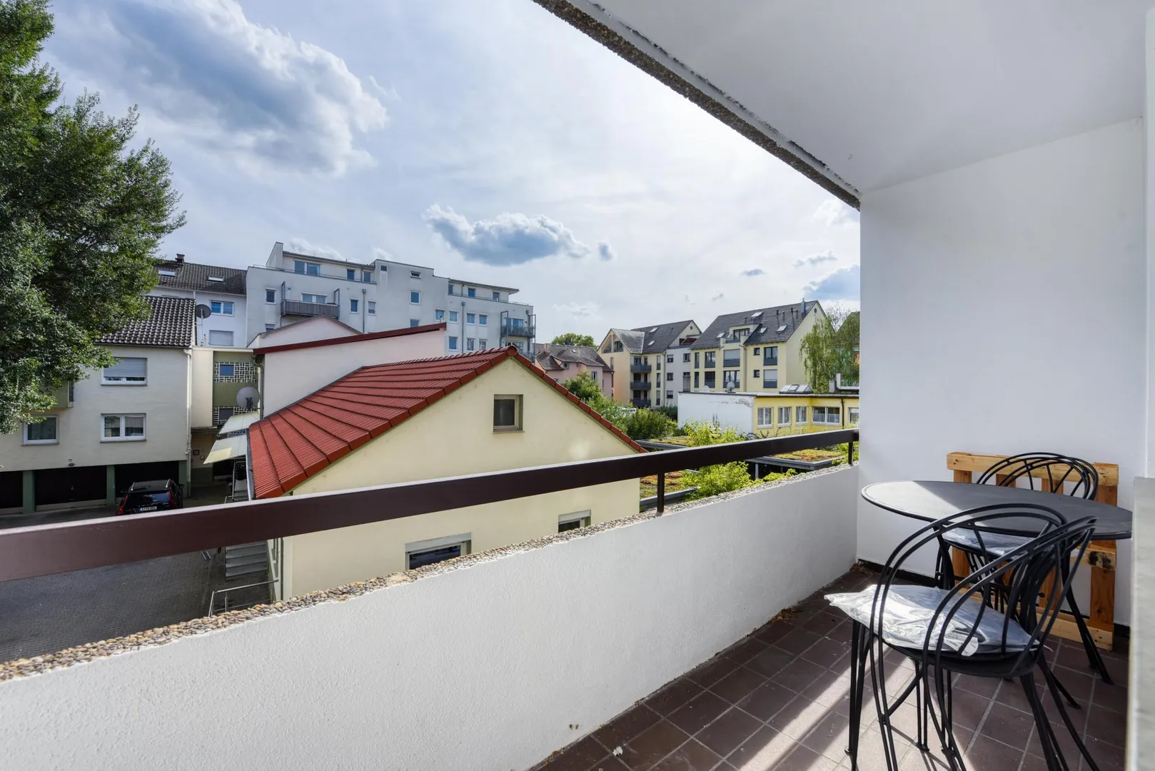 Der ca. 4,5 m² große und überdachte Süd-Balkon (zum Innenhof) ist vom Zimmer begehbar.