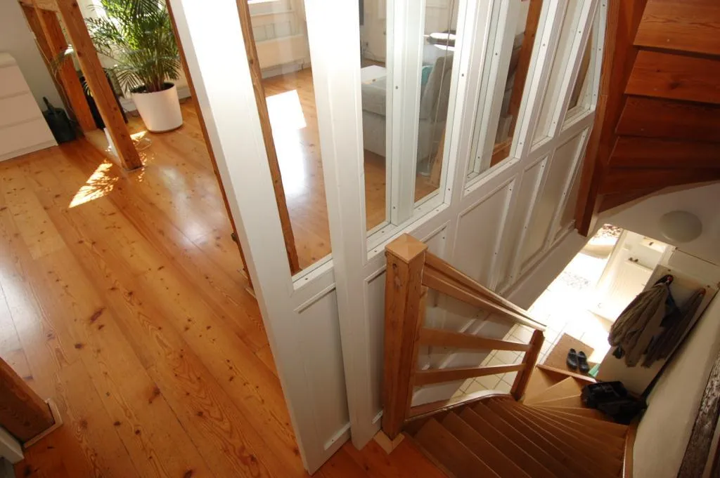 Im Obergeschoss befinden sich der Flur, 2 Zimmer und ein Badezimmer. Die Böden sind mit Holzdielenböden ausgestattet, die Wände sind verputzt, die Raumhöhe beträgt ca. 2,31 Meter.