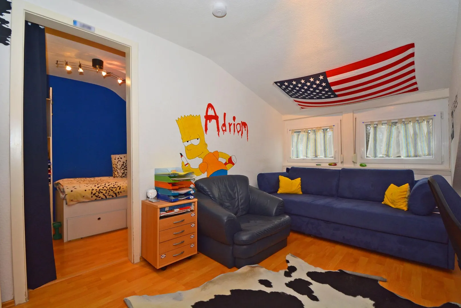 Das aktuelle Kinderzimmer ist mit einem kleinen vierten Zimmer verbunden und bietet gesamt viel Platz für ein Kind oder auch die Möglichkeit das kleine Zimmer als Arbeits- oder Gästezimmer zu nutzen.