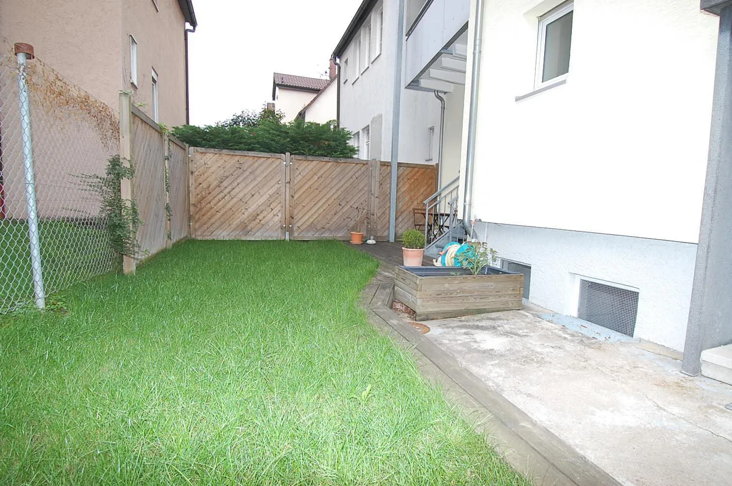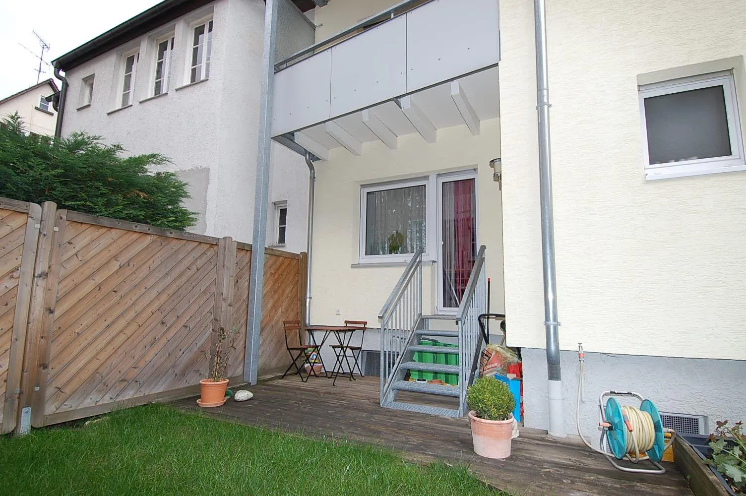 Von der Hochparterre-Wohnung gibt es einen direkten Zugang zur Terrasse und zur Grünfläche.