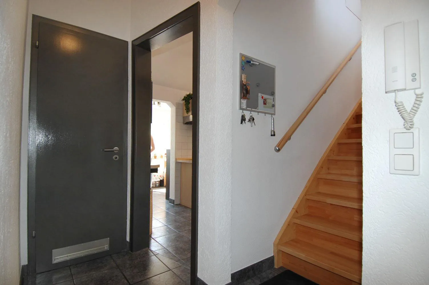 Über eine massive Holztreppe gelangen Sie in die obere Etage der Wohnung.
