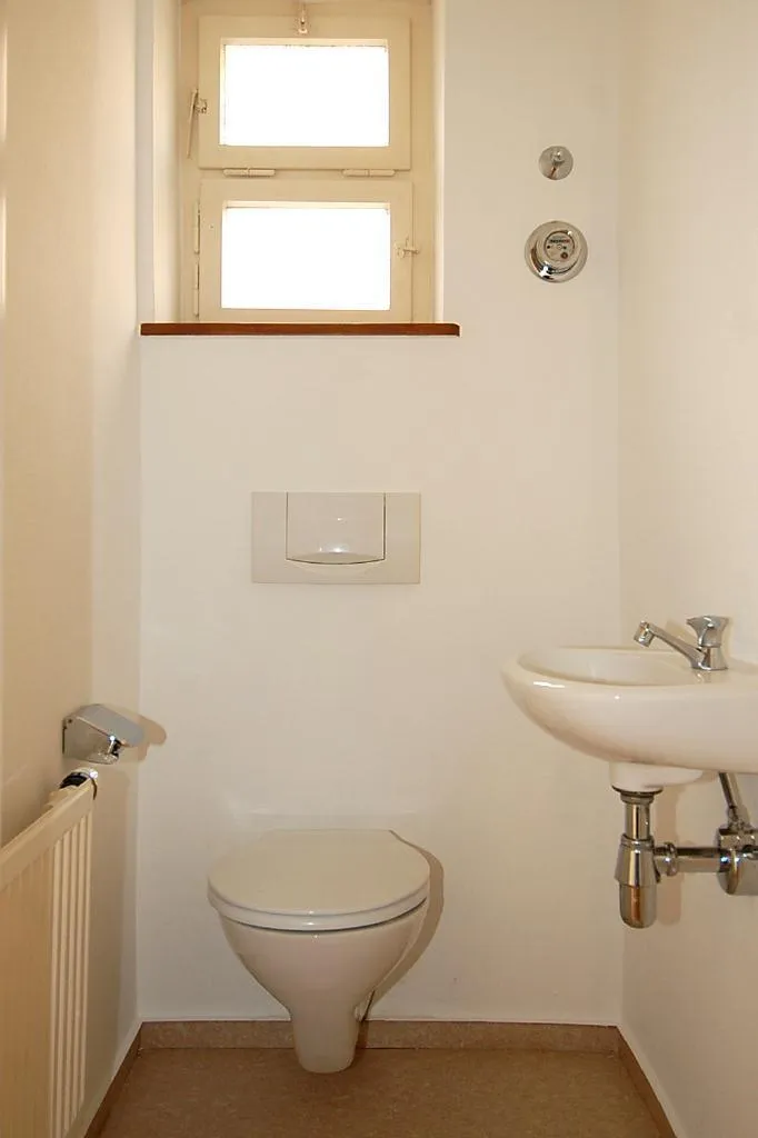 Das separate WC ist mit einem Fenster und einem Waschbecken ausgestattet.