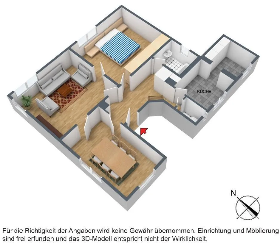 Trotz sorgfältiger Prüfung der im Exposé gemachten Angaben, können wir für die Richtigkeit und Vollständigkeit der Angaben keine Haftung übernehmen. Bitte beachten Sie, dass die Immobilie auf den Bildern größer wirkt als sie in der Realität ist.