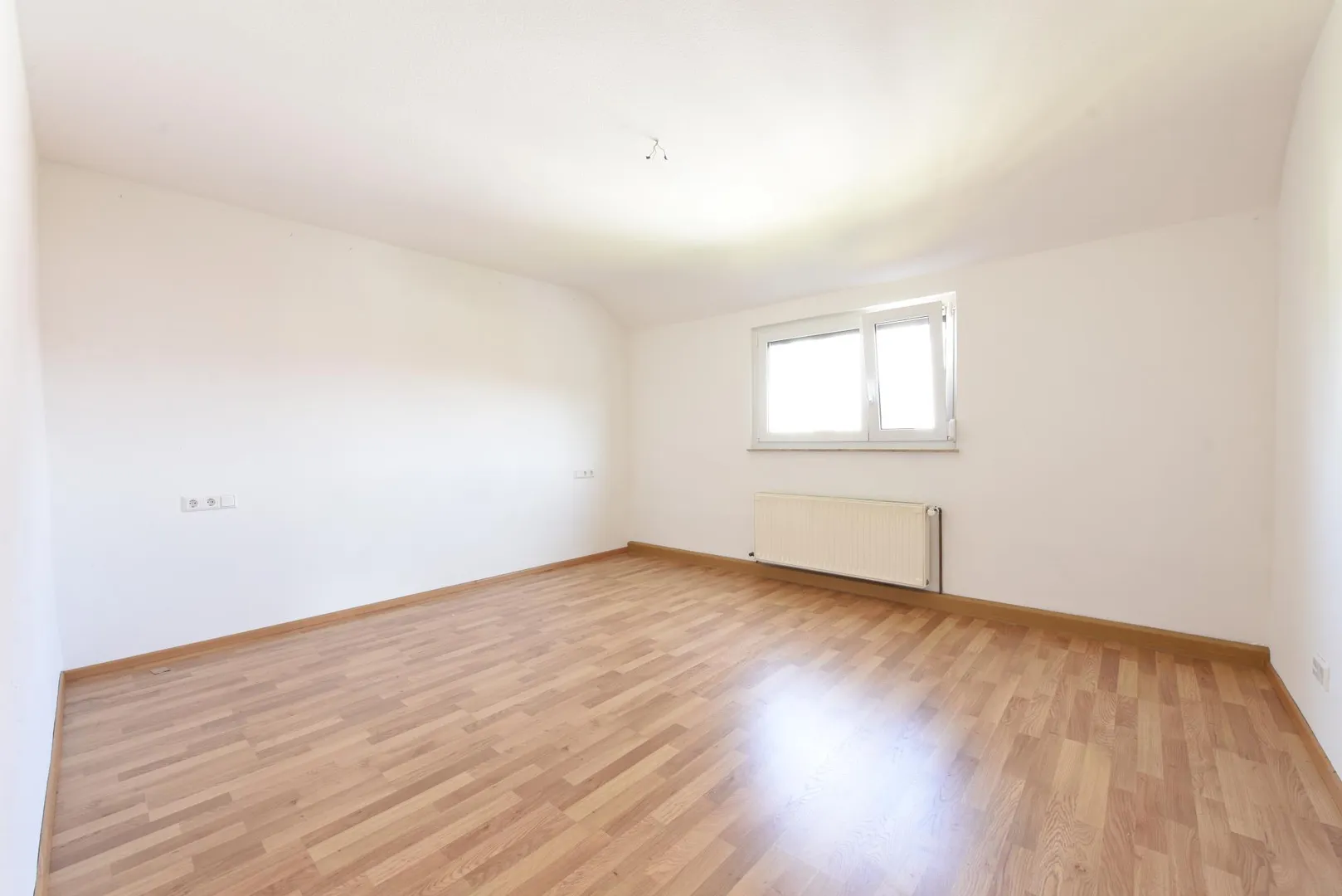 Die Böden in den Zimmern sind mit Laminat ausgestattet. Der Boden im Flur ist gefliest.