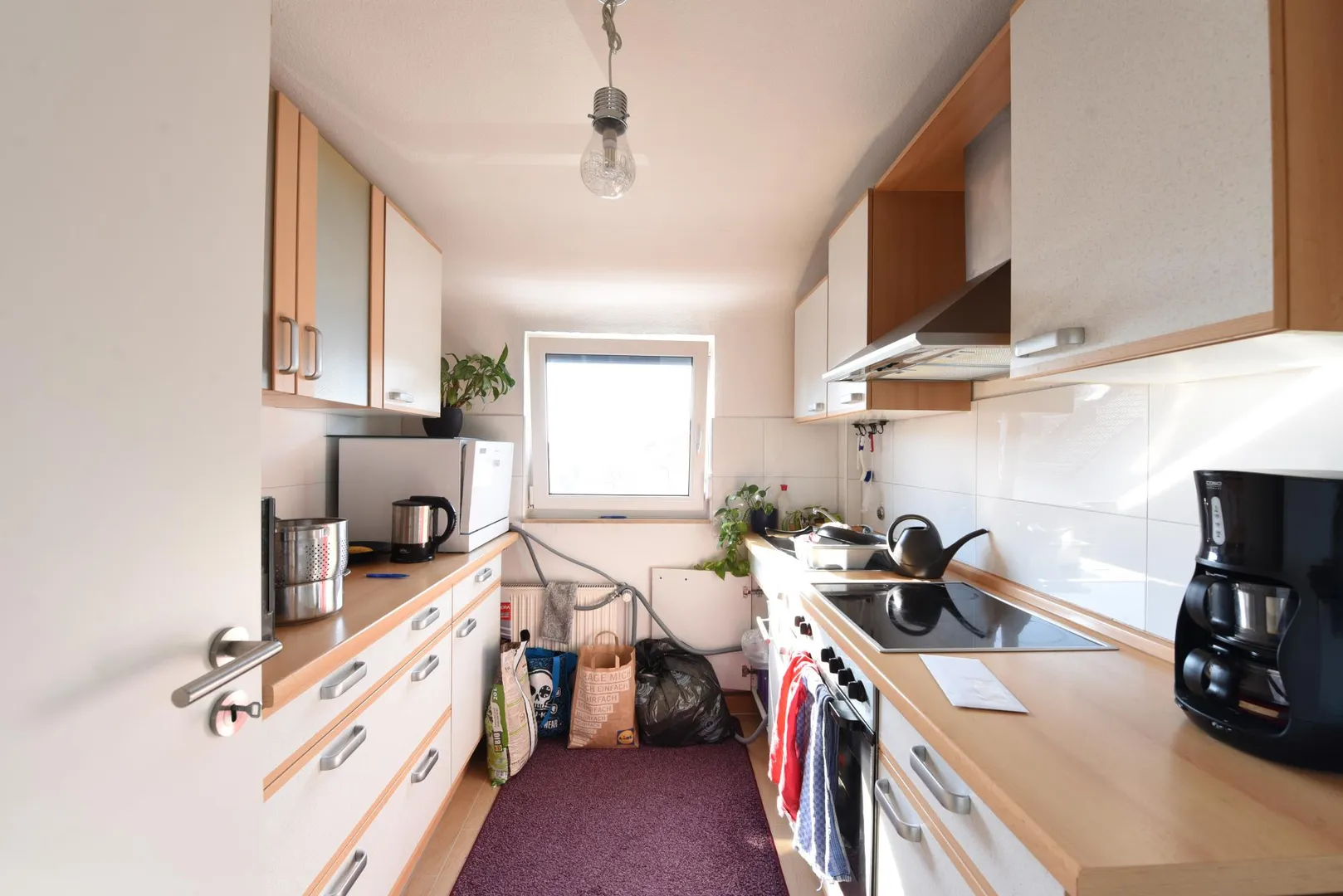 Der Grundriss ist gut. Jeder Raum ist vom Flur begehbar. Das Badezimmer und das separate WC verfügen über ein Fenster. Die Wohnung verfügt über keinen Balkon.