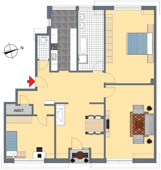 Der Grundriss der Wohnung ist gut. Das Badezimmer sowie das separate WC verfügen jeweils über ein Fenster.