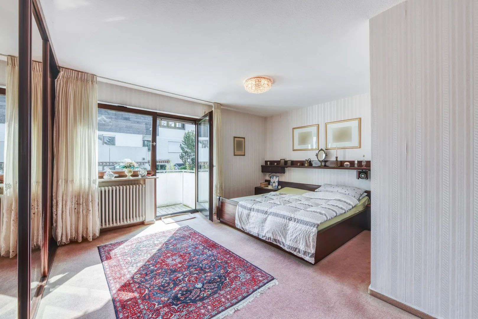 Im Obergeschoss, mit ca. 47 m² Wohnfläche, befinden sich das Schlafzimmer mit Balkon, ein Kinderzimmer sowie das Haupt-Badezimmer mit Fenster. Die Raumhöhen betragen ca. 2,36 Meter.