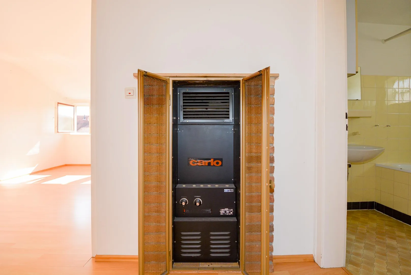 Die Wohnung wird über einen Strom-Kachelofen im Wohnzimmer und Flur beheizt. In den beiden Arbeitszimmern sowie im Schlafzimmer sind keine Heizungen vorhanden.