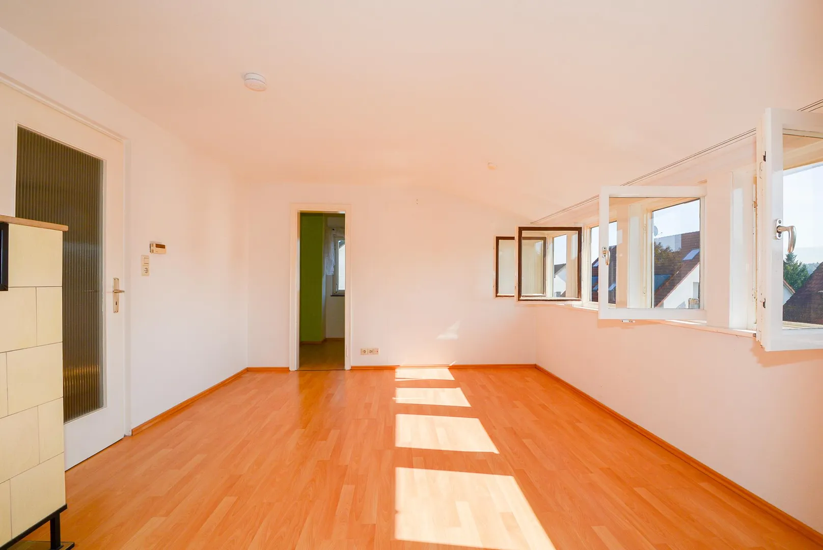 Diese modernisierungsbedürftige 2-Zimmer-Dachgeschoss-Etagen-Wohnung ohne Balkon befindet sich im 2. Obergeschoss eines freistehenden 4-Familienhauses.