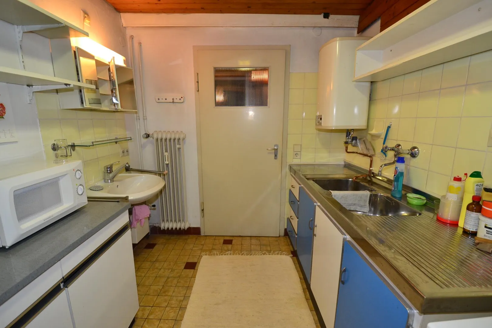 Diese möblierte 1-Zimmer-Wohnung befindet sich im Souterrain (Untergeschoss) eines freistehenden 5-Familien-Hauses.