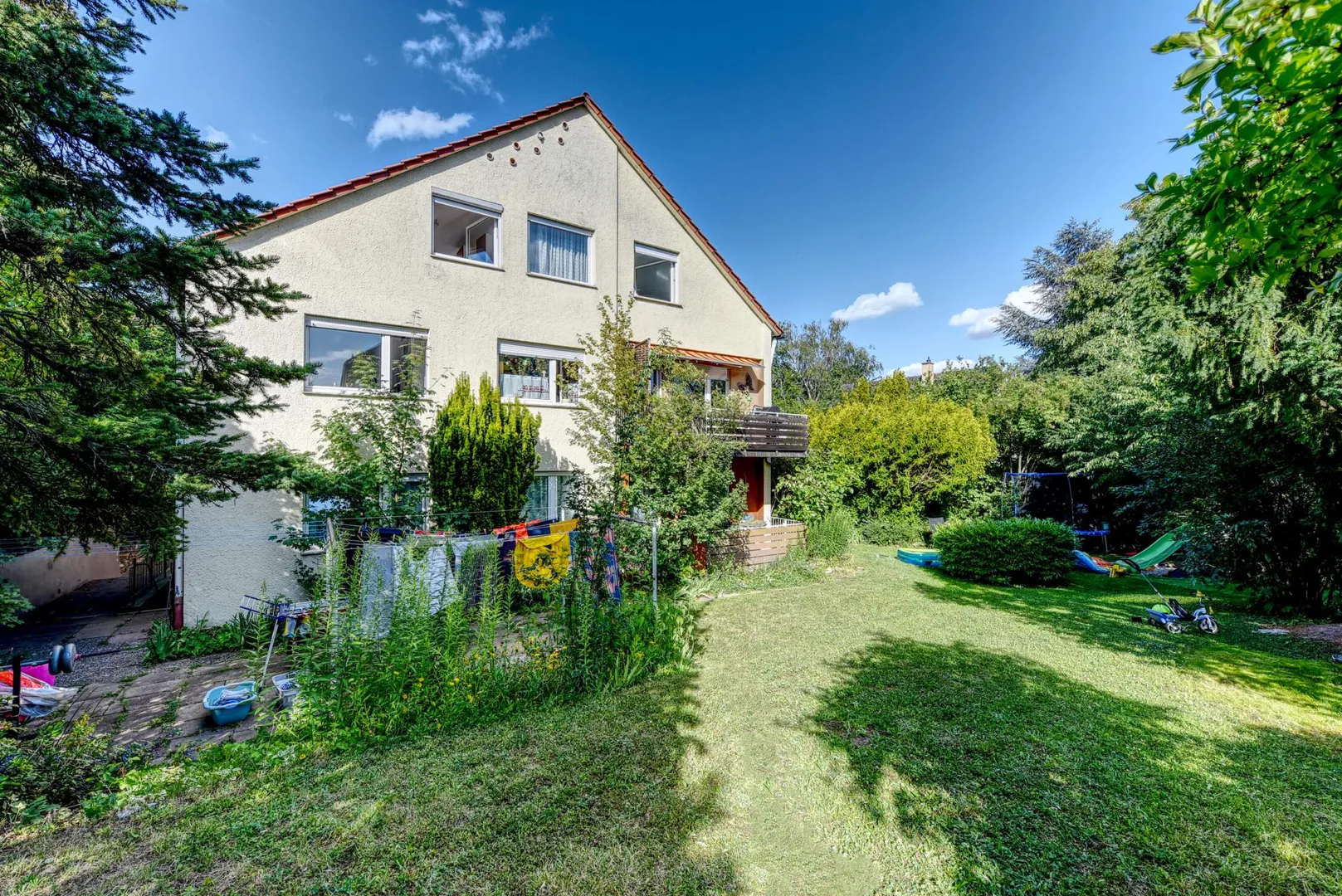 Gemeinschaftlich sind ein Waschraum, ein Trockenplatz im Freien sowie der Garten.