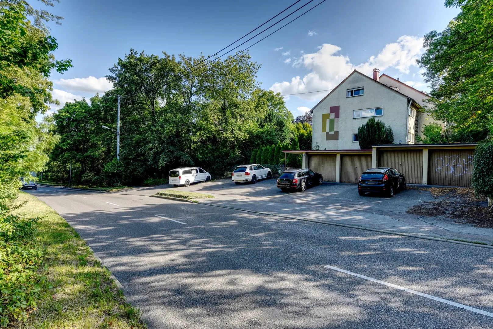 Zur Wohnung gehören ein kleiner Abstellraum im Untergeschoss sowie ein Kfz-Stellplatz außen, direkt vor dem Haus.
