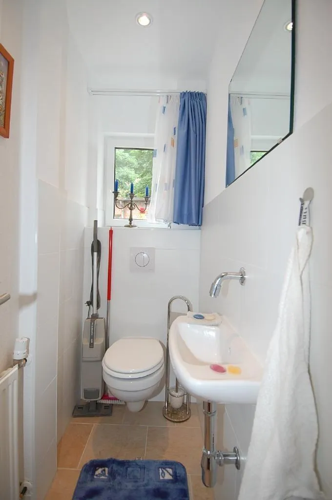 Das seperate WC verfügt über ein Fenster und ist halbhoch gefliest.