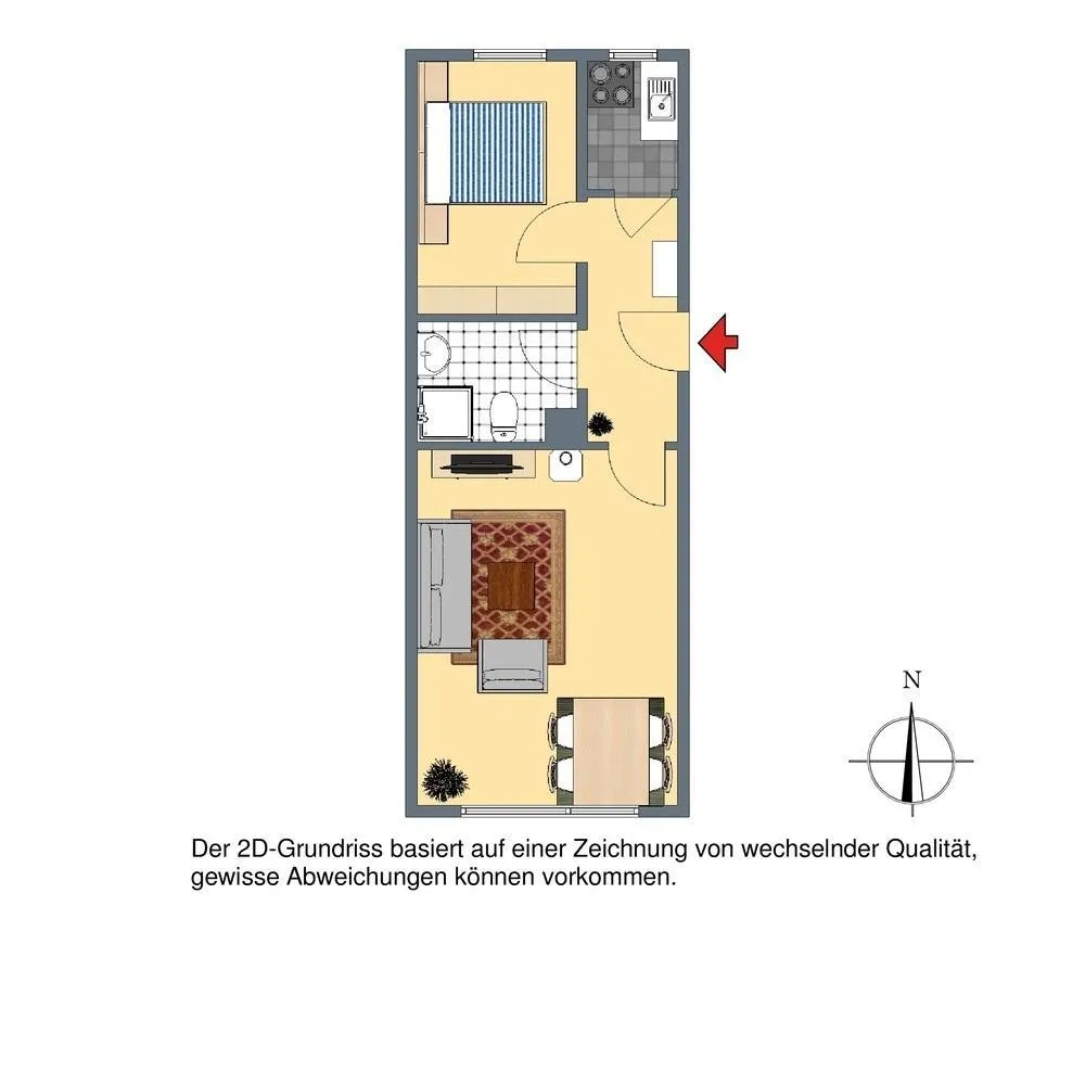Diese möblierte 2-Zimmer-Wohnung befindet in einem 5-Familien-Reihenmittelhaus.