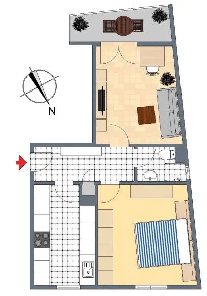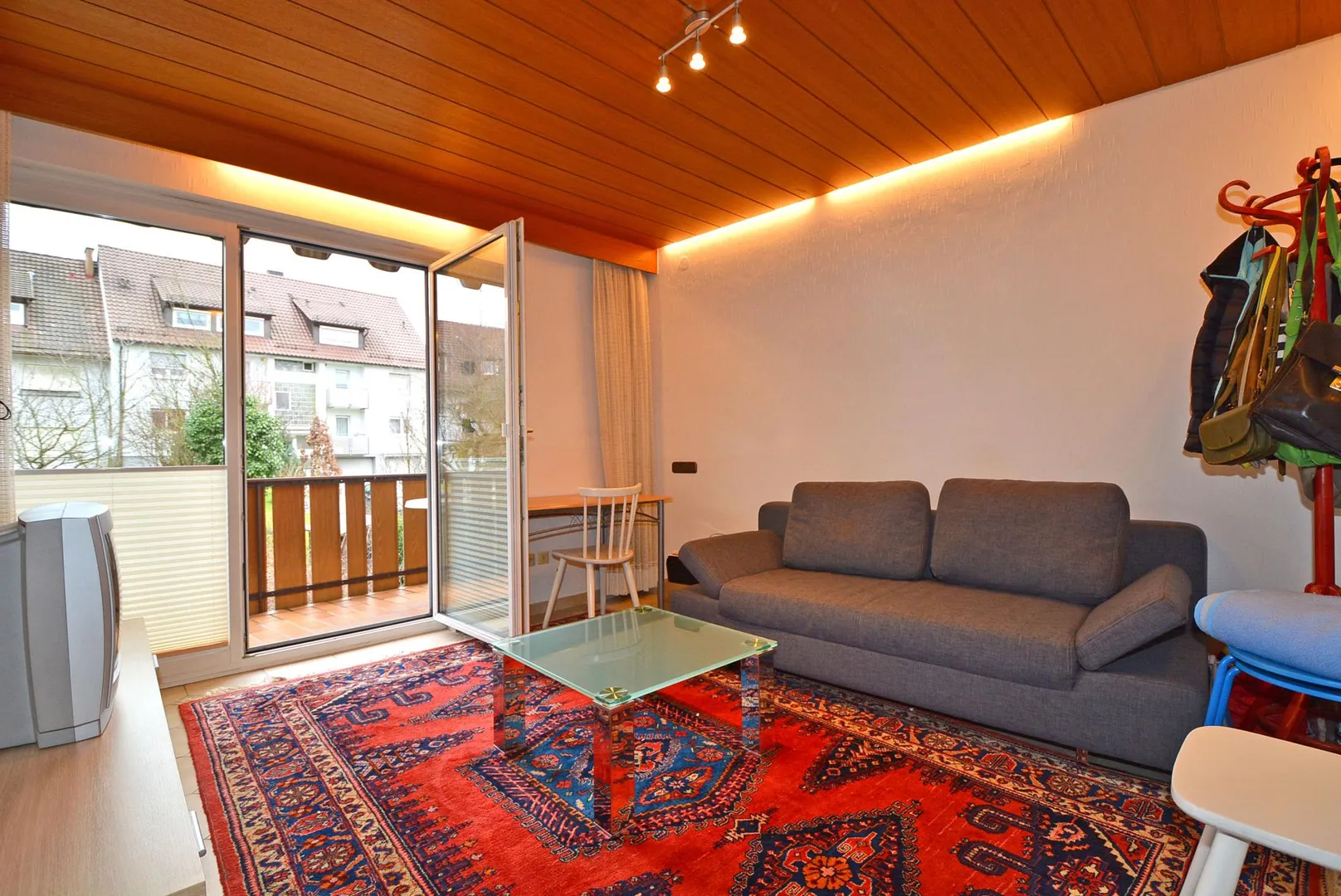 Diese helle und möblierte 2-Zimmer-Wohnung befindet sich im 1. Obergeschoss.