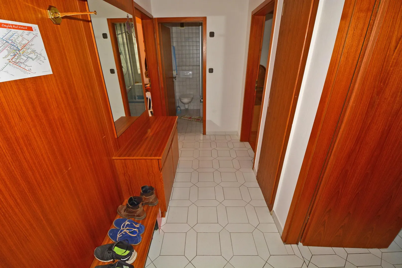 Der Grundriss der Wohnung ist gut: Alle Zimmer sind vom Flur aus begehbar. Das Badezimmer ist mit einem Fenster ausgestattet.