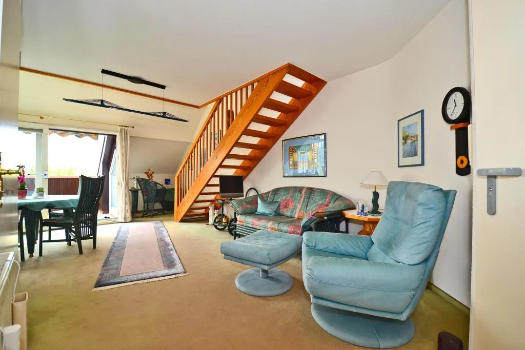 Diese gemütliche und möblierte 2-Zimmer-Dachgeschoss-Maisonette-Wohnung mit Galerie befindet sich im 2. Obergeschoss eines freistehenden 4-Familienhauses.
