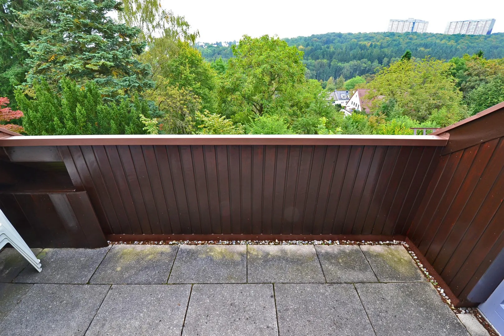 Die Wohnung befindet sich beliebter Süd-Hang-Aussichtslage am Waldrand, in einer ruhigen Sackgasse im Stadtbezirk Birkach und im Stadtteil Schönberg.