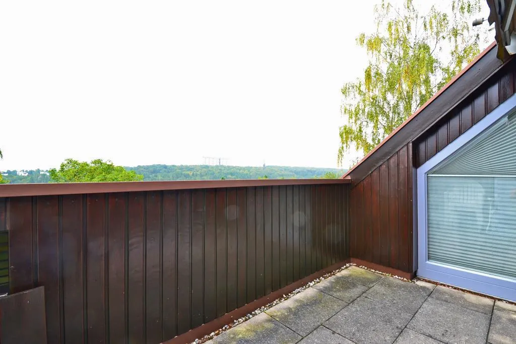 Die ca. 10 m² große Süd-Loggia mit tollem Fernblick ins Grüne ist vom Wohnbereich begehbar und ist mit einer elektrischen Markise ausgestattet.